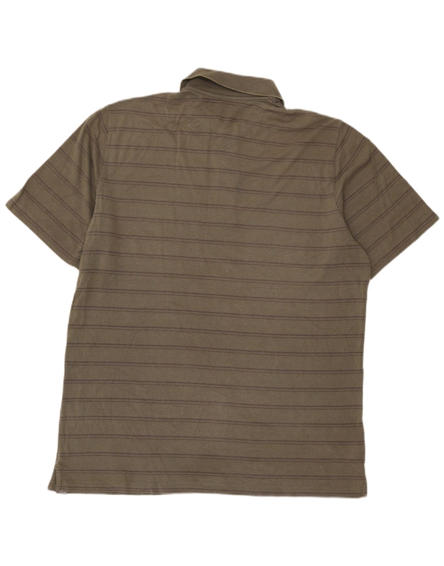 Eddie Bauer Mens Tall Regular Fit Polo Shirt Large Khaki Striped Cotton