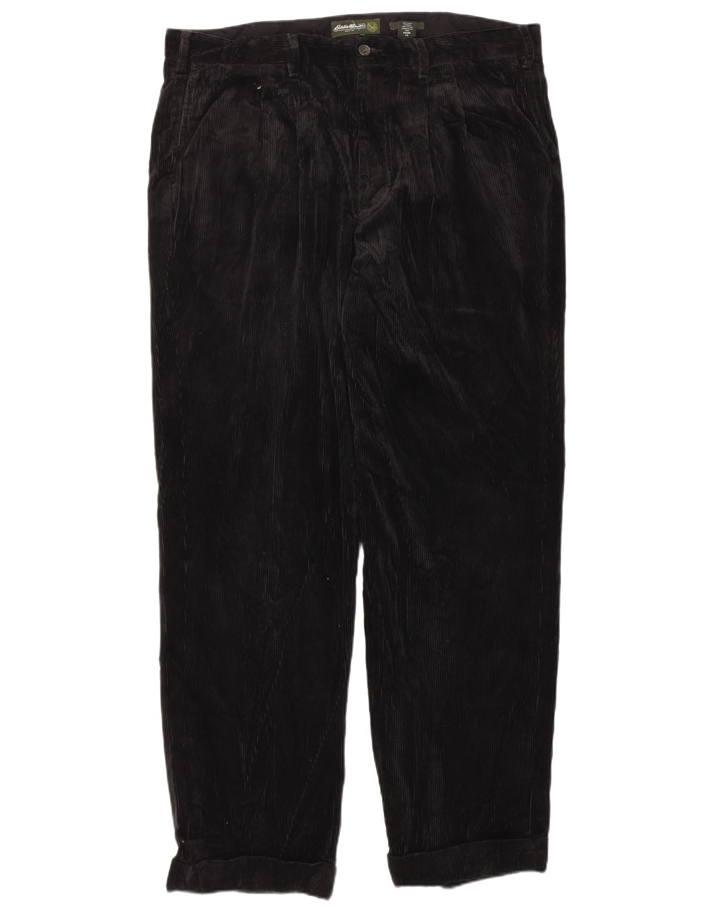 EDDIE BAUER Mens Tall Relaxed Fit Pegged Corduroy Trousers W40 L34 Black