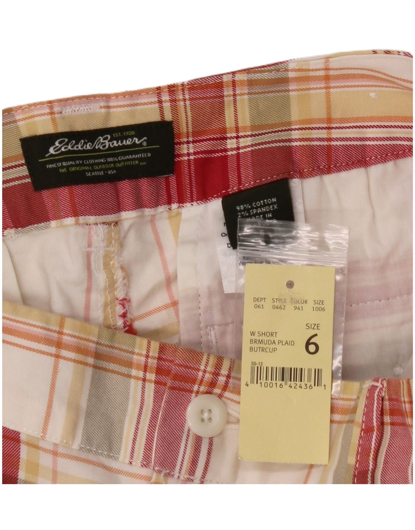 EDDIE BAUER Womens Chino Shorts US 6 Medium W30 Red Check Cotton