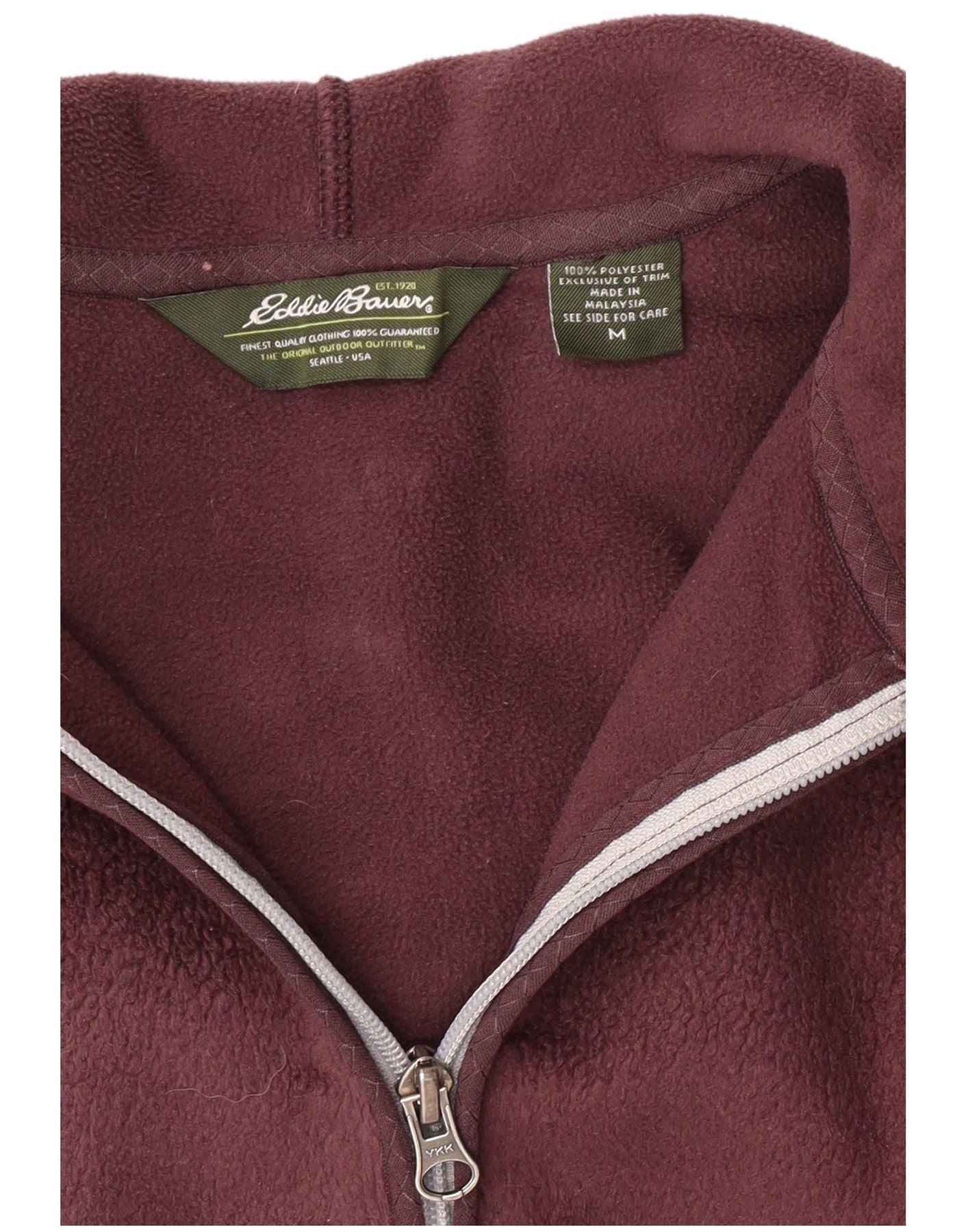 EDDIE BAUER Womens Hooded Fleece Jacket UK 14 Medium Burgundy Polyester