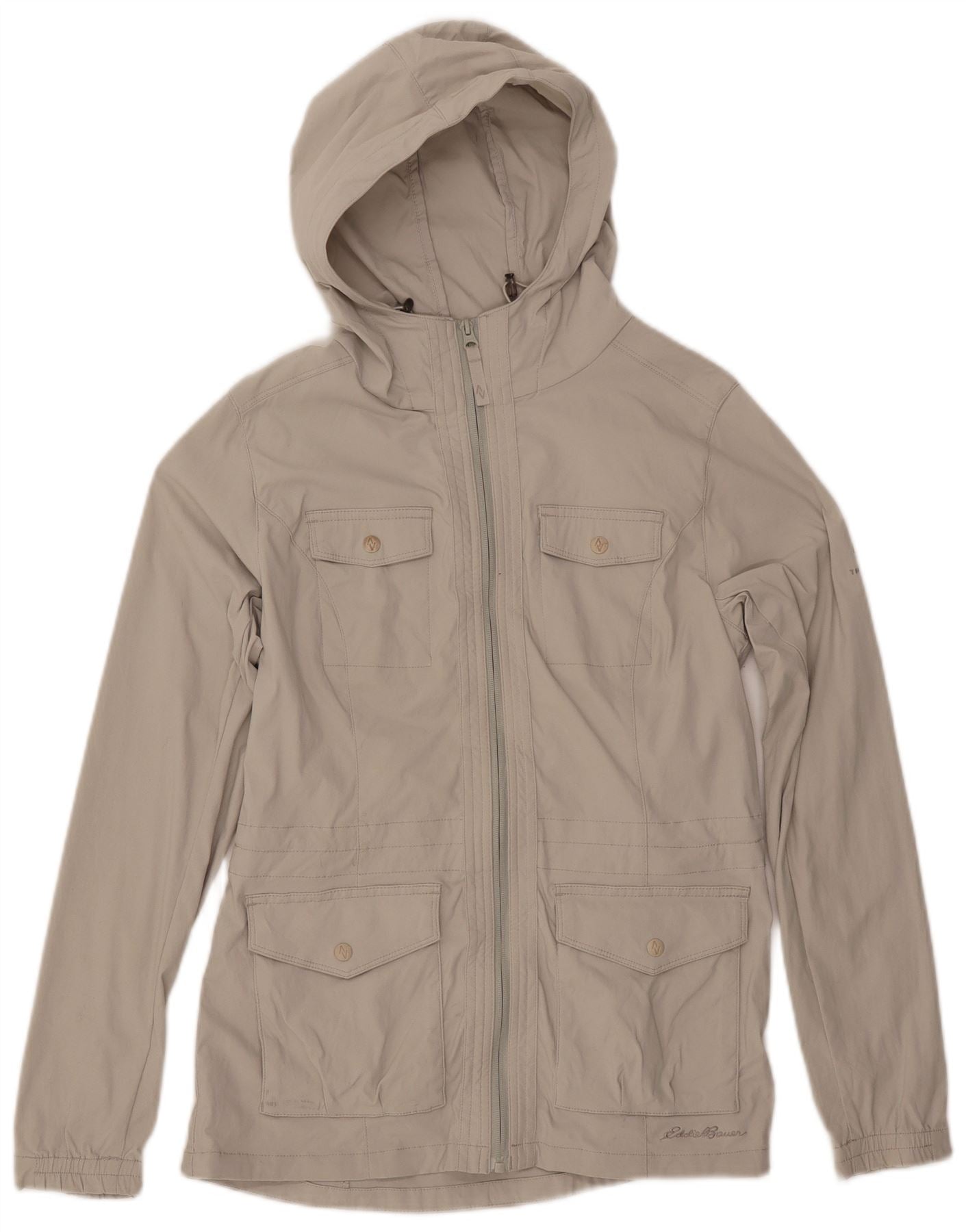 EDDIE BAUER Womens Hooded Utility Jacket UK 10 Small Beige Nylon