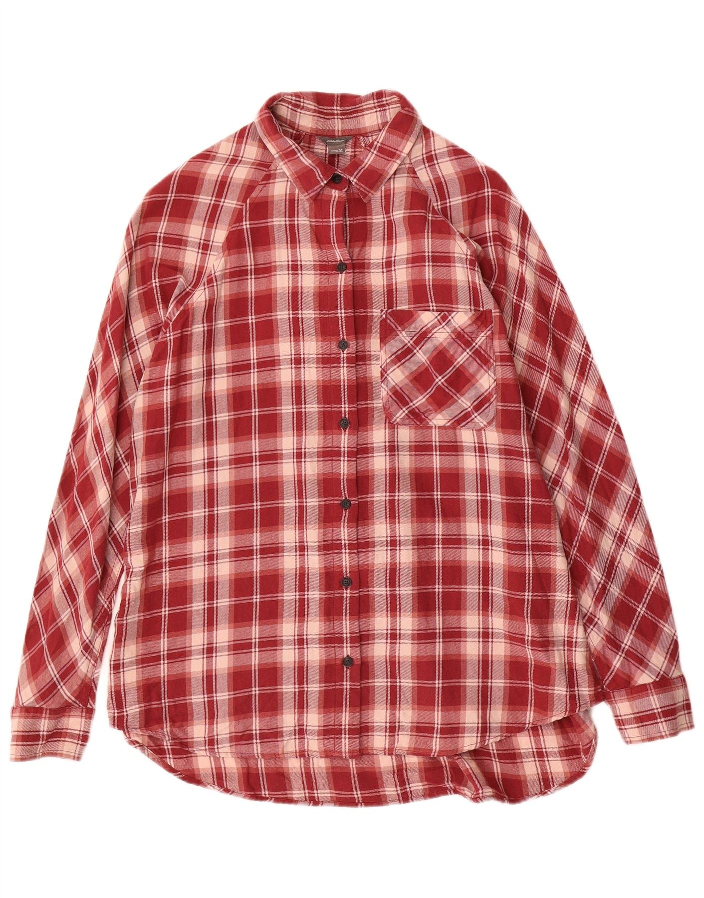 EDDIE BAUER Womens Loose Fit Longline Flannel Shirt UK 14 Medium Red Check