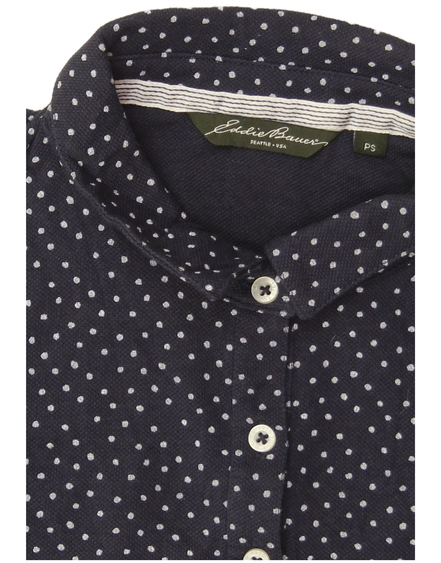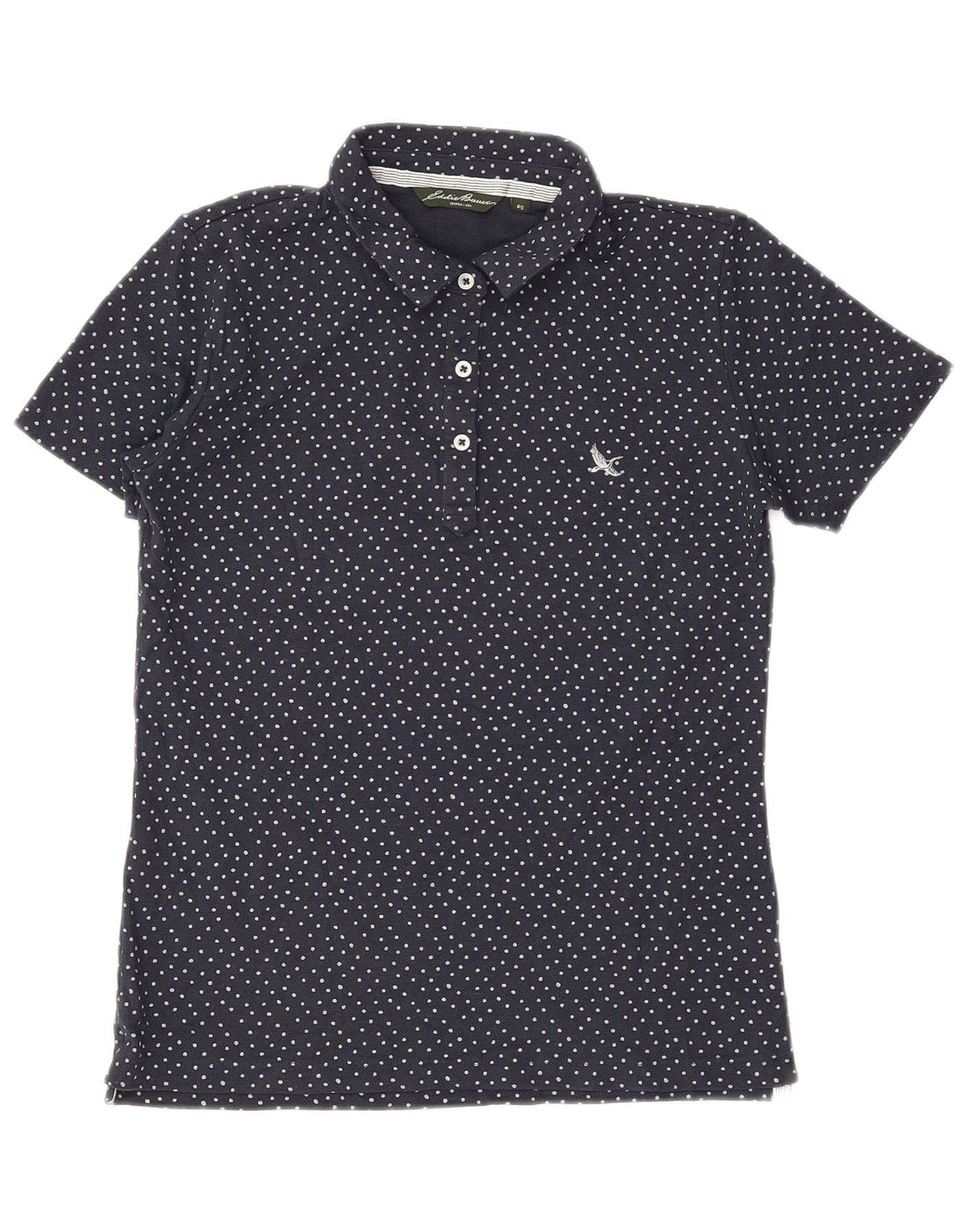 EDDIE BAUER Womens Polo Shirt UK 10 Small Navy Blue Polka Dot