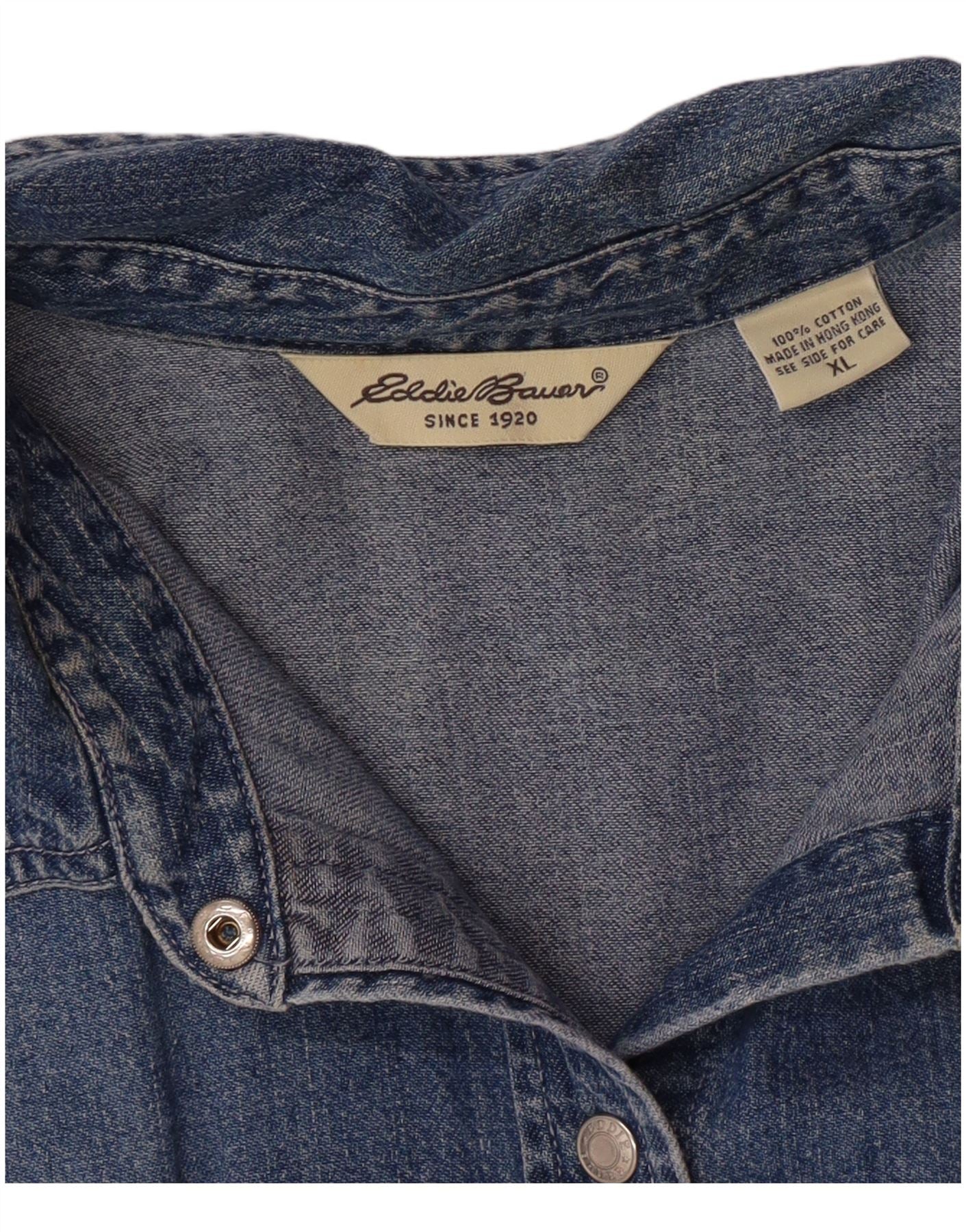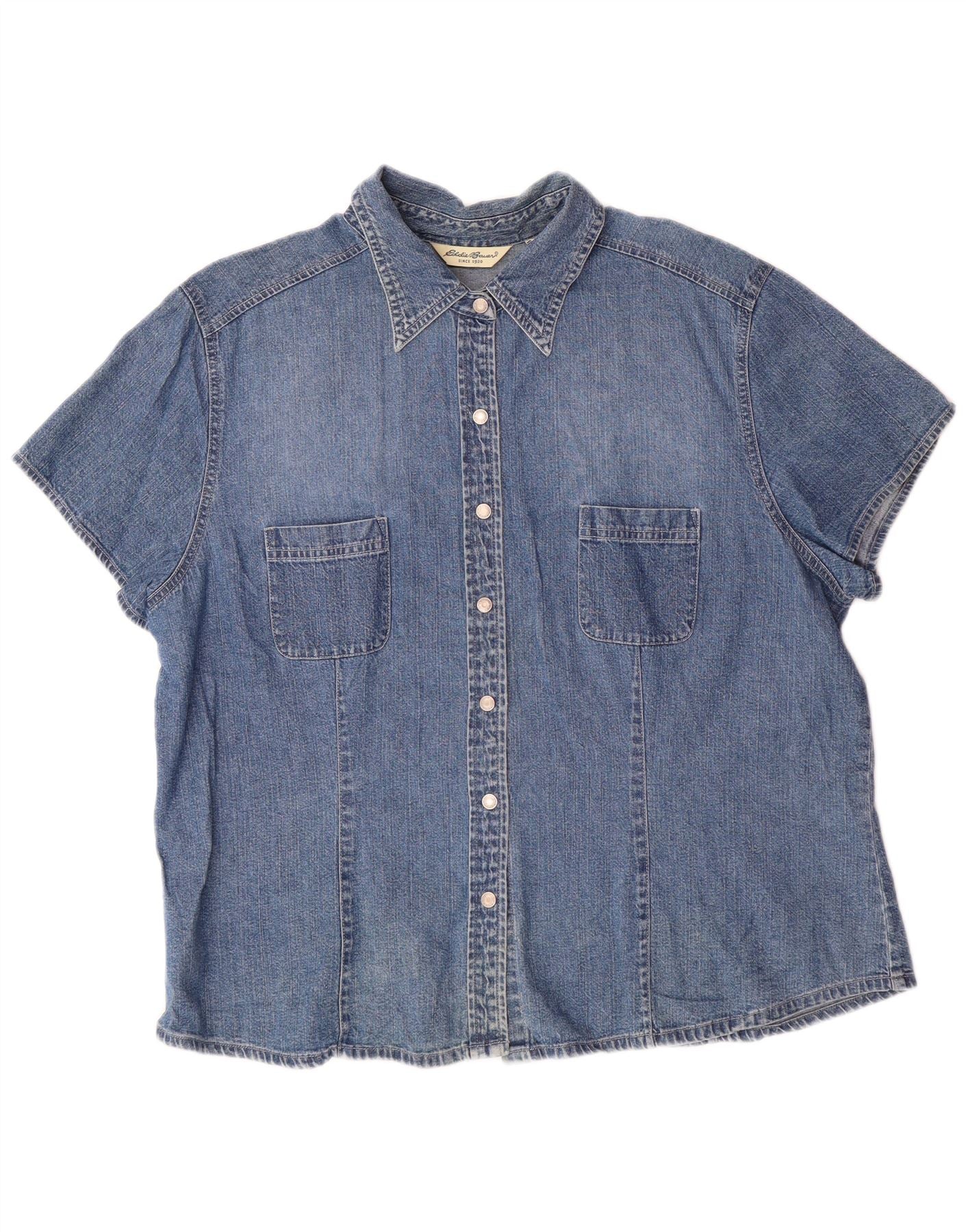 EDDIE BAUER Womens Short Sleeve Denim Shirt UK 18 XL Blue Cotton