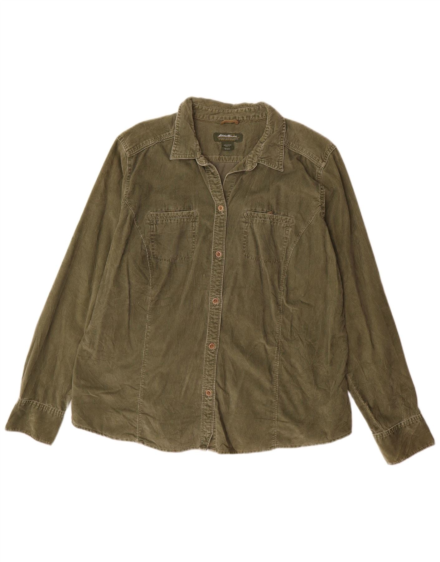 EDDIE BAUER Womens Tall Corduroy Shirt UK 18 XL Green Cotton