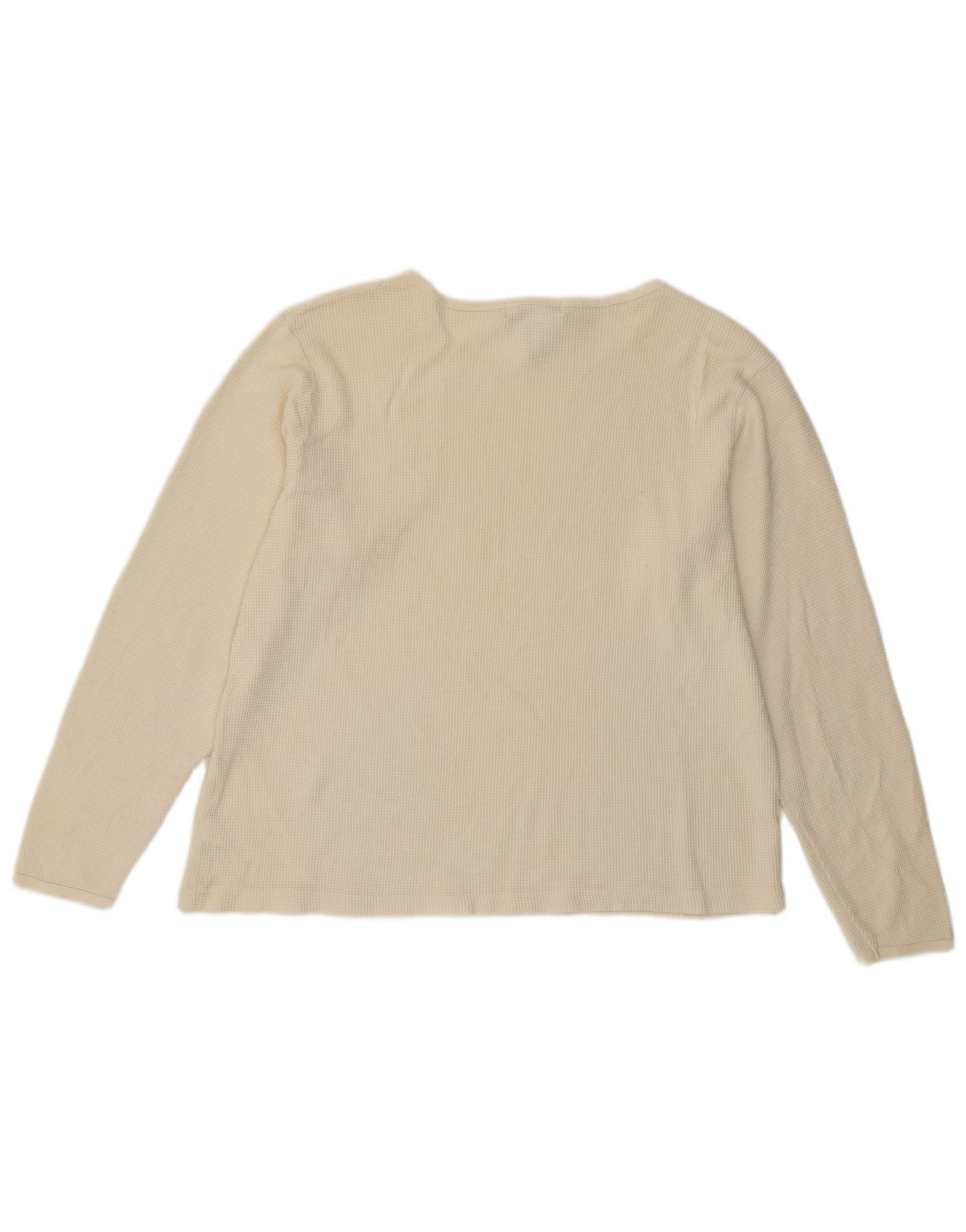 EDDIE BAUER Womens Top Long Sleeve UK 16 Large Off White Cotton