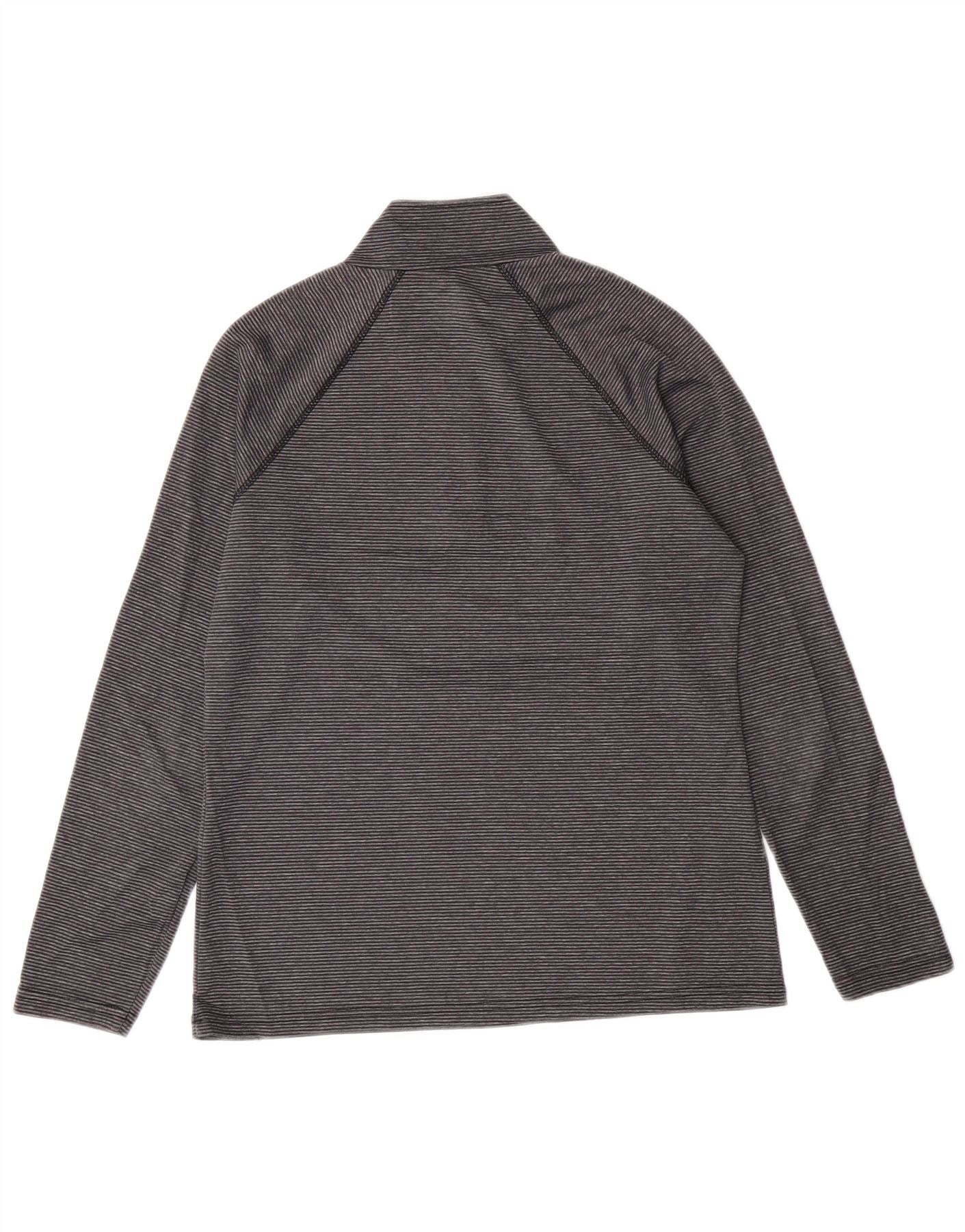 Eddie Bauer Womens Zip Neck Top Long Sleeve UK 14 Large Grey Striped Sports