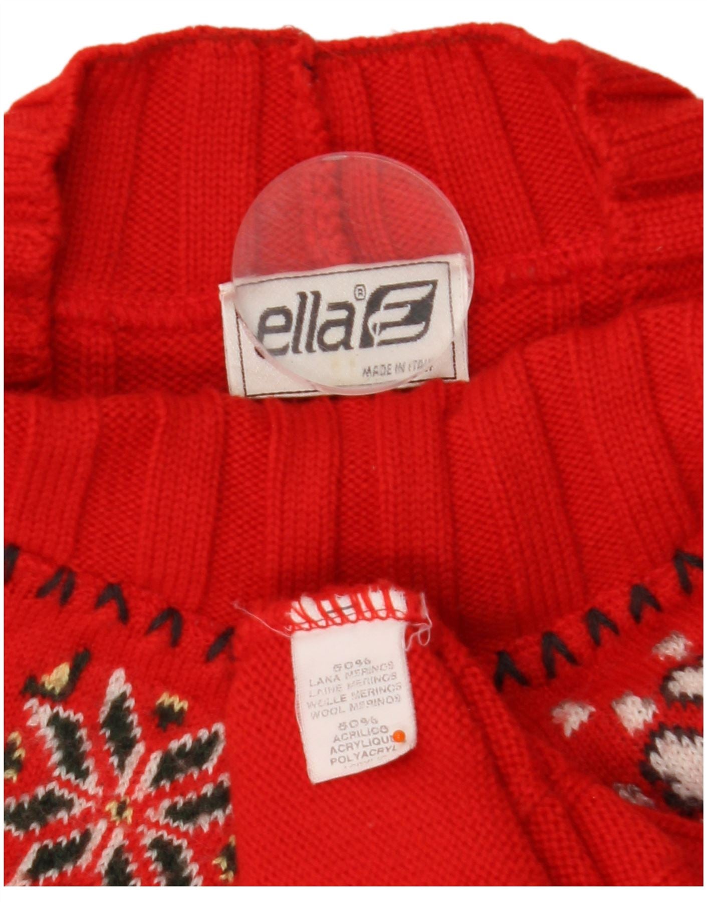 ELLA Womens Turtle Neck Jumper Sweater UK 16 Large Red Fair Isle Wool