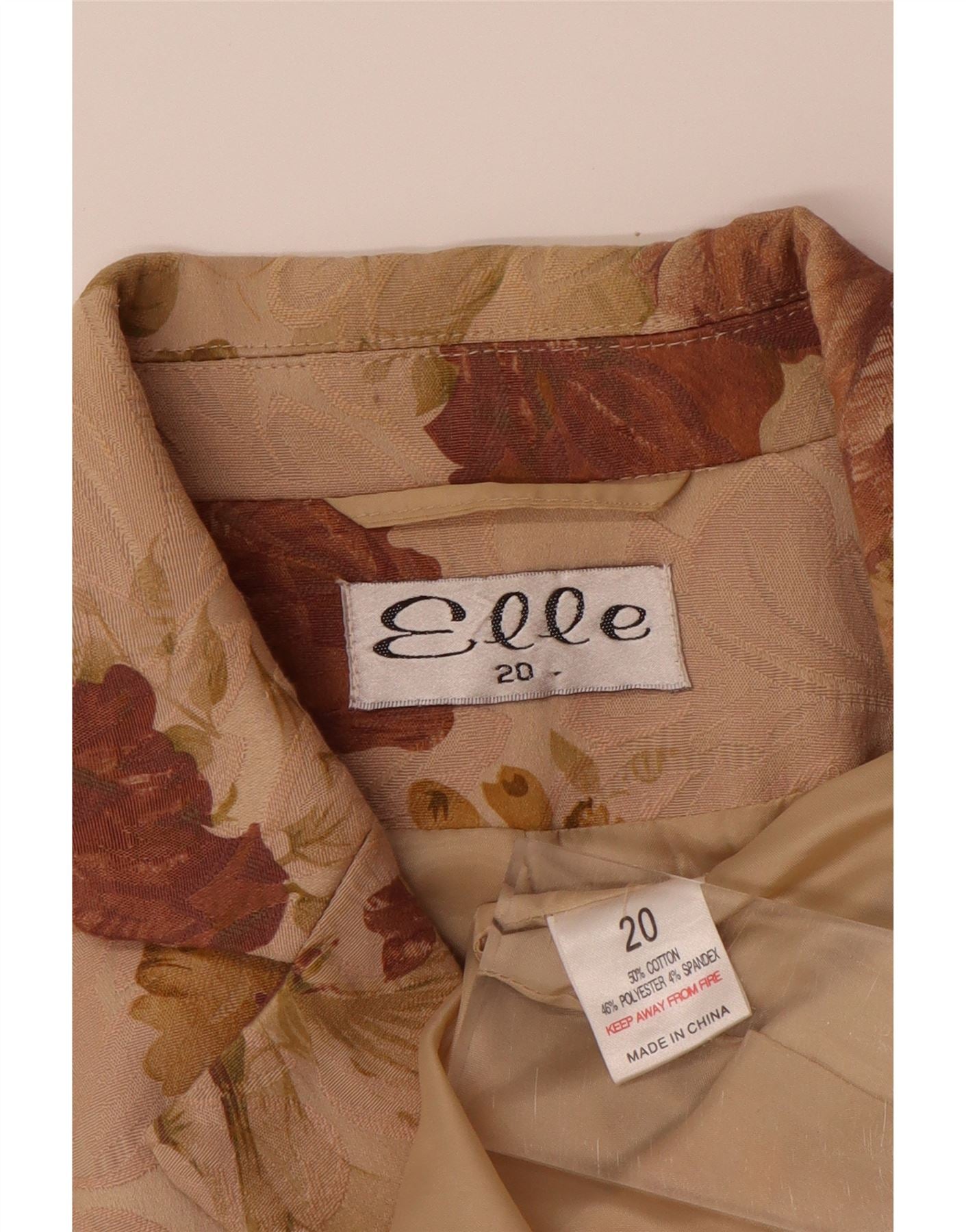 ELLE Womens 2 Button Blazer Jacket UK 20 2XL Beige Floral Cotton