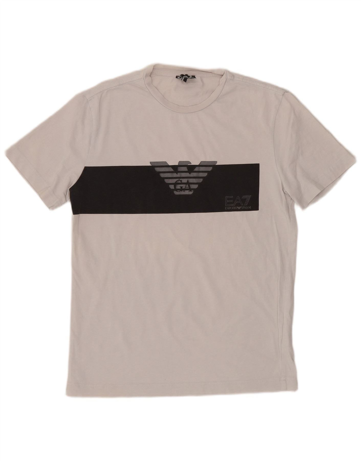 EMPORIO ARMANI Mens Graphic T-Shirt Top Small White Colourblock Cotton