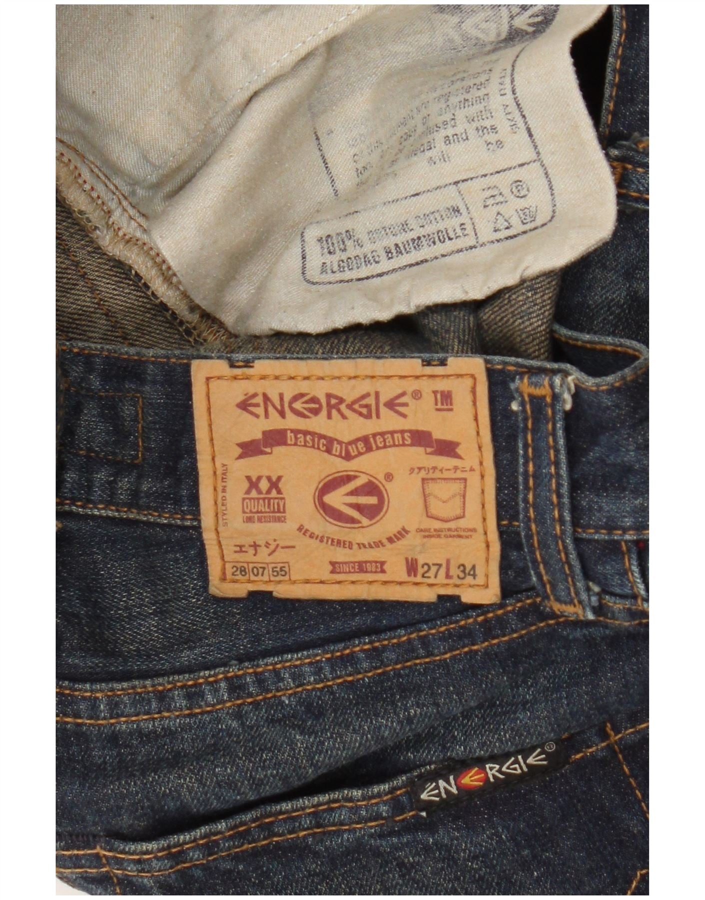 - AI Description: These Energie womens straight jeans are crafted from 100 percent natural cotton denim in a classic blue wash. They feature a regular fit and a straight leg silhouette. The button closure ensures a secure fit. Subtle distressed detailing adds a contemporary edge. Functional pockets and a branded logo accent complete the design.