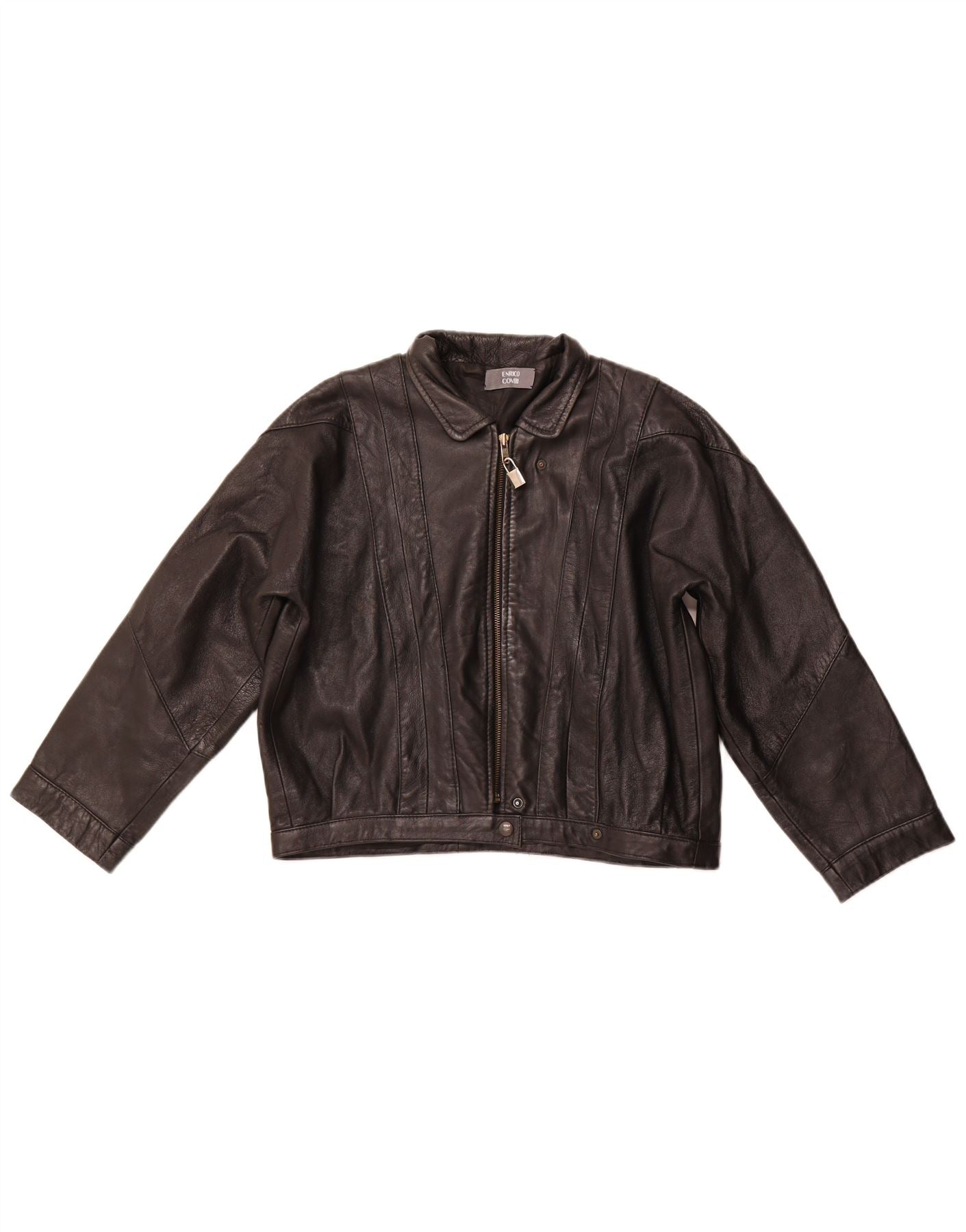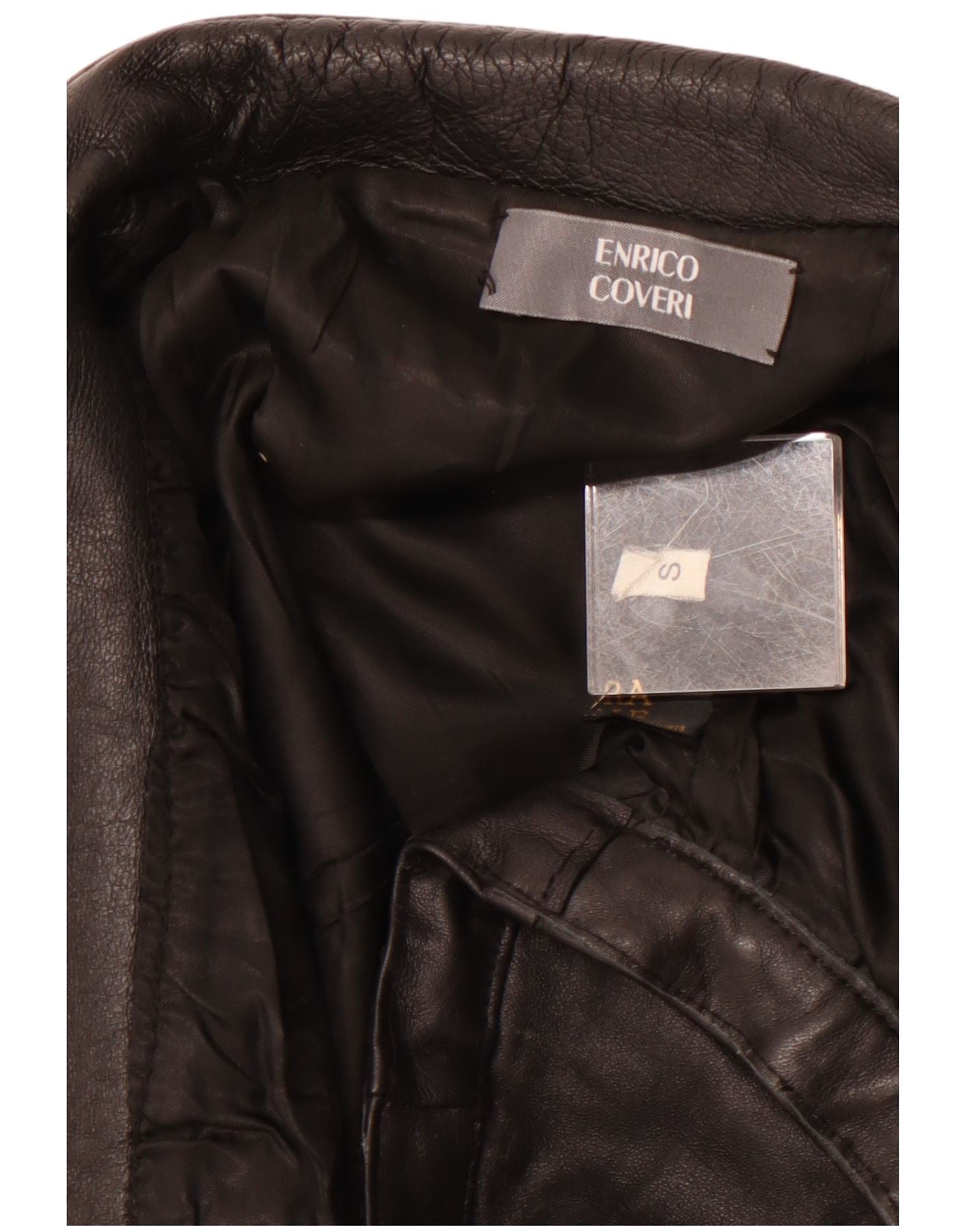 ENRICO COVERI Womens Oversized Leather Jacket UK 10 Small Black Leather