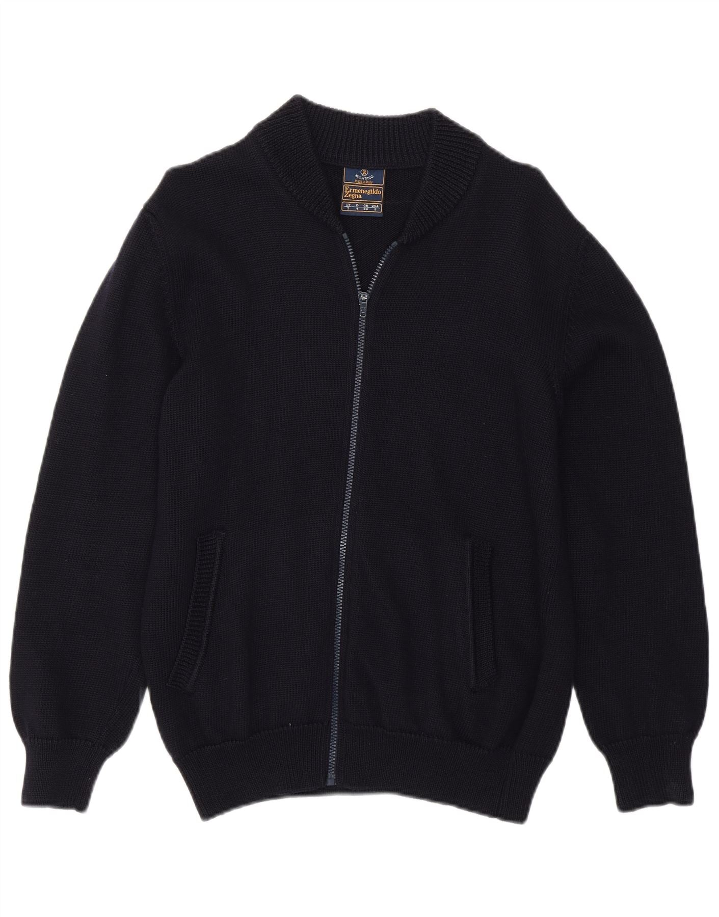 ERMENEGILDO ZEGNA Mens Cardigan Sweater UK 36 Small Navy Blue Virgin Wool