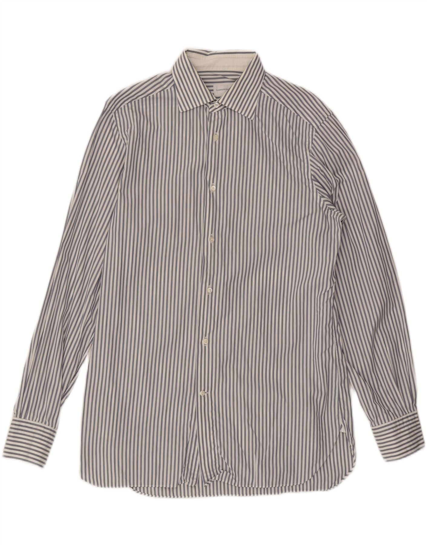 ERMENEGILDO ZEGNA Mens Slim Fit Shirt Medium Blue Striped Cotton