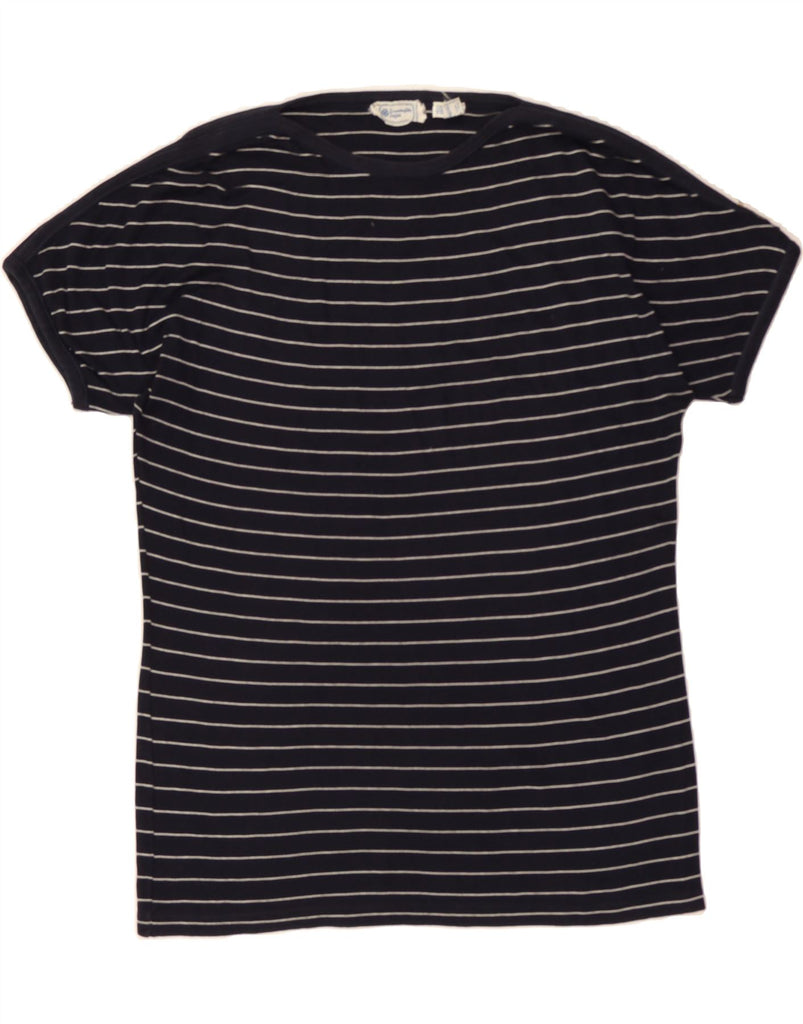 ERMENEGILDO ZEGNA Mens T-Shirt Top IT 56 2XL Navy Blue Striped Cotton