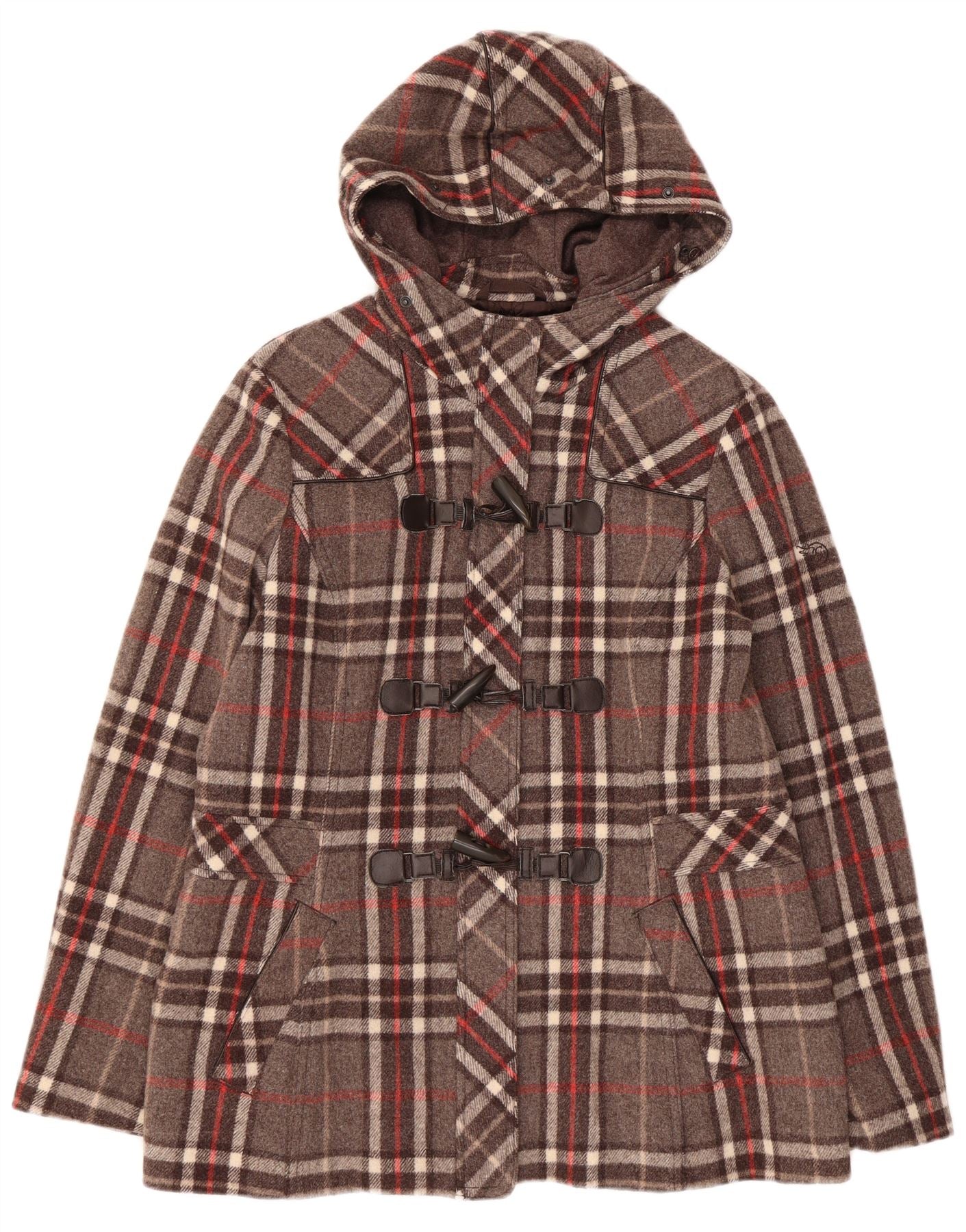 ESPRIT Womens Hooded Duffle Coat UK 16 Large Brown Plaid Wool