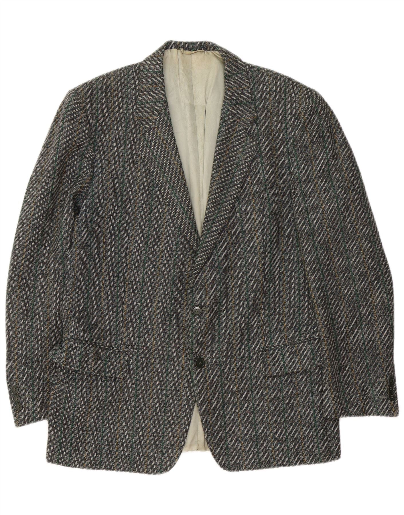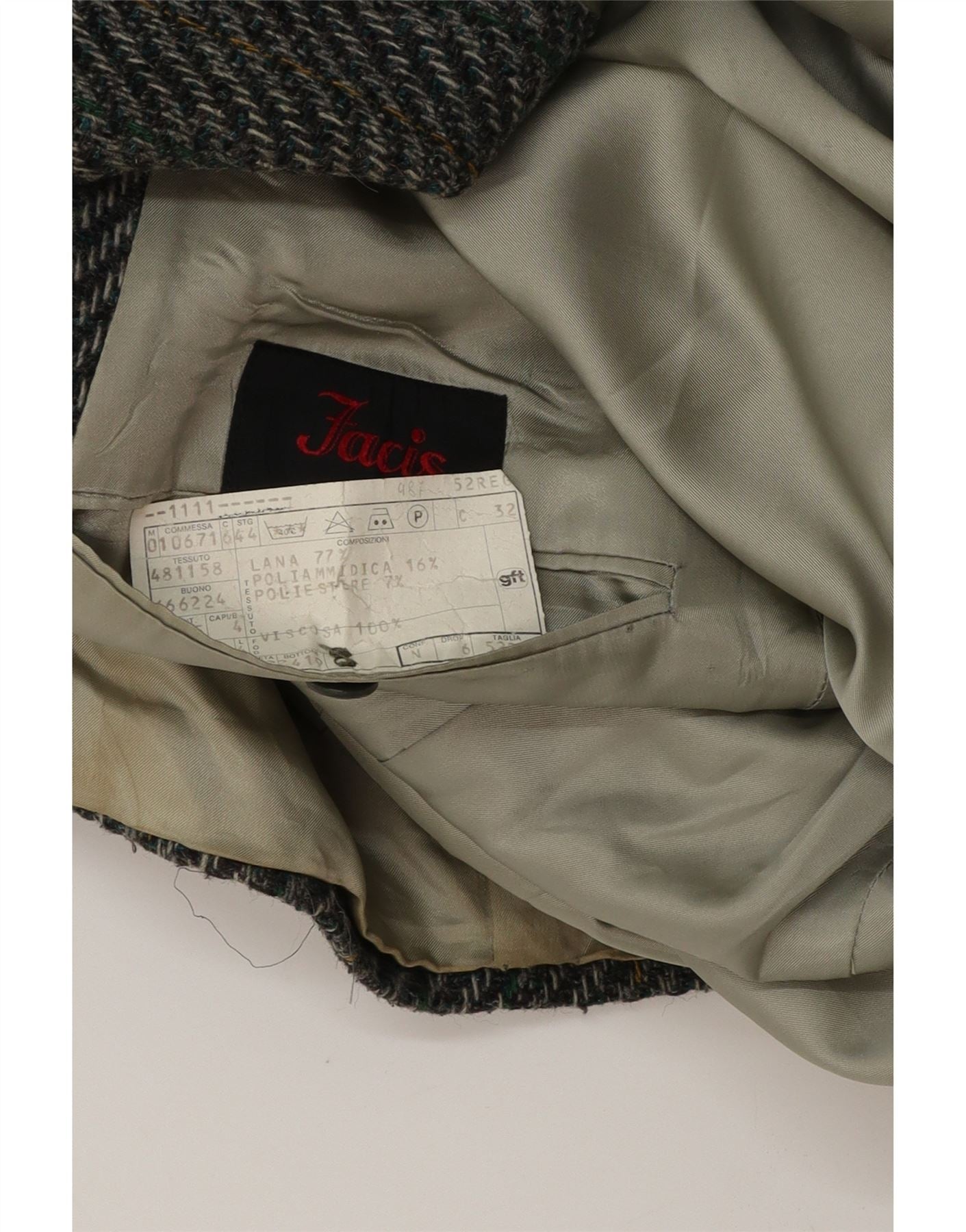 Facis Mens 2 Button Blazer Jacket IT 52 XL Grey Herringbone Wool