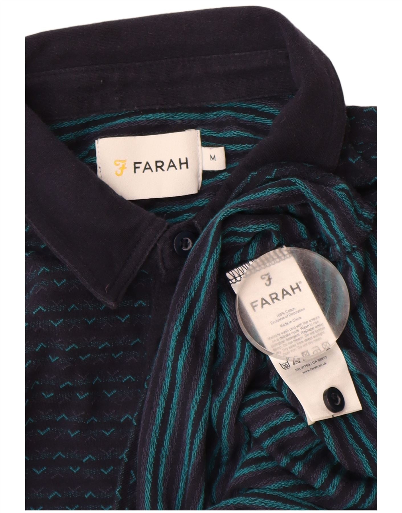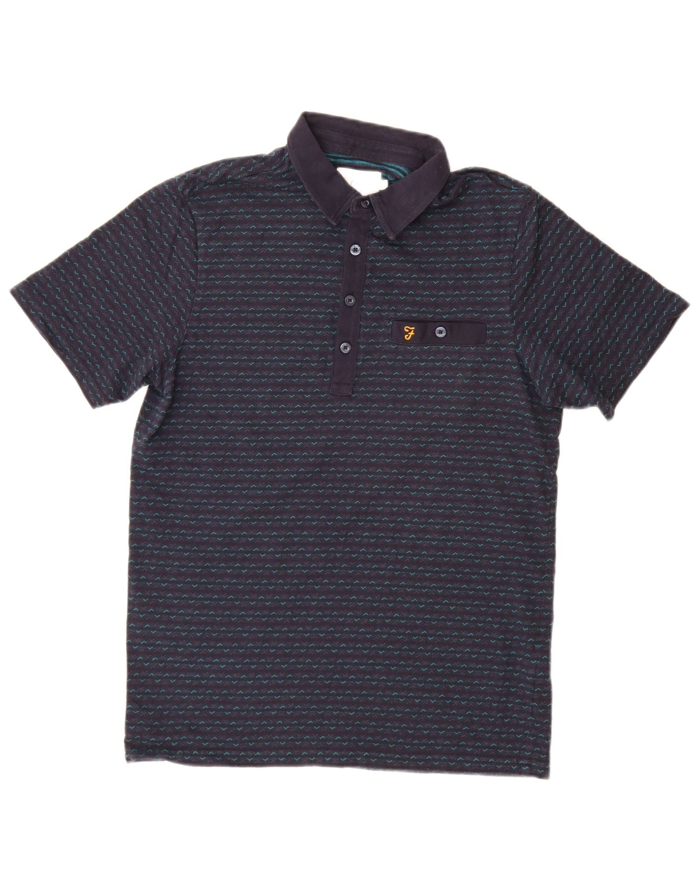 FARAH Mens Polo Shirt Medium Navy Blue Geometric Cotton