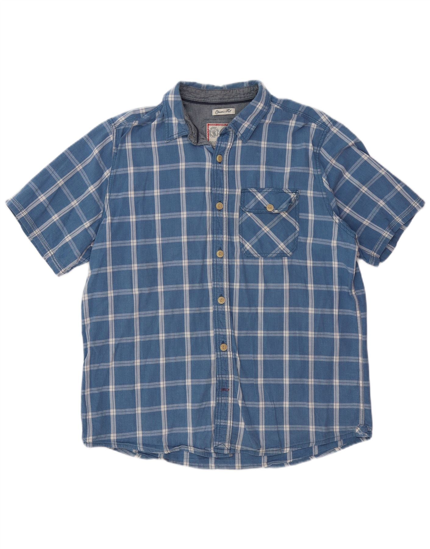 FAT FACE Mens Classic Fit Short Sleeve Shirt Large Blue Check