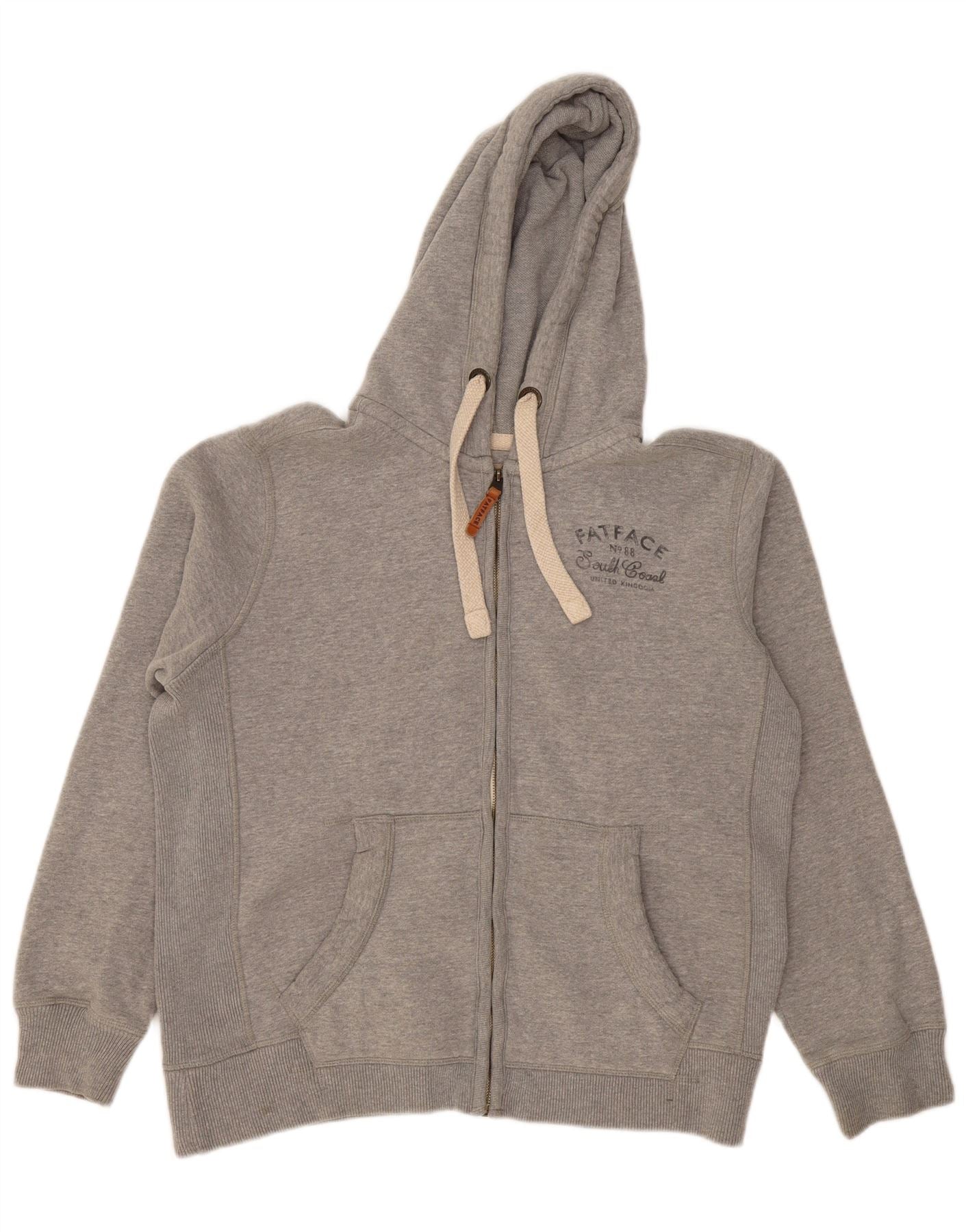 FAT FACE Mens Graphic Zip Hoodie Sweater Large Grey Cotton