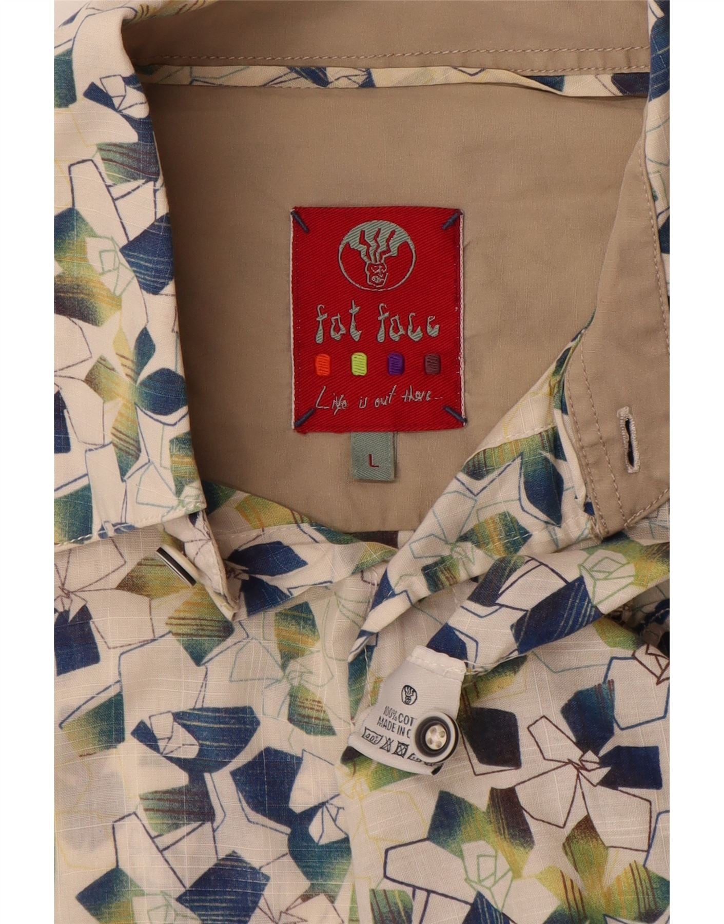 FAT FACE Mens Short Sleeve Shirt Large Off White Geometric Cotton