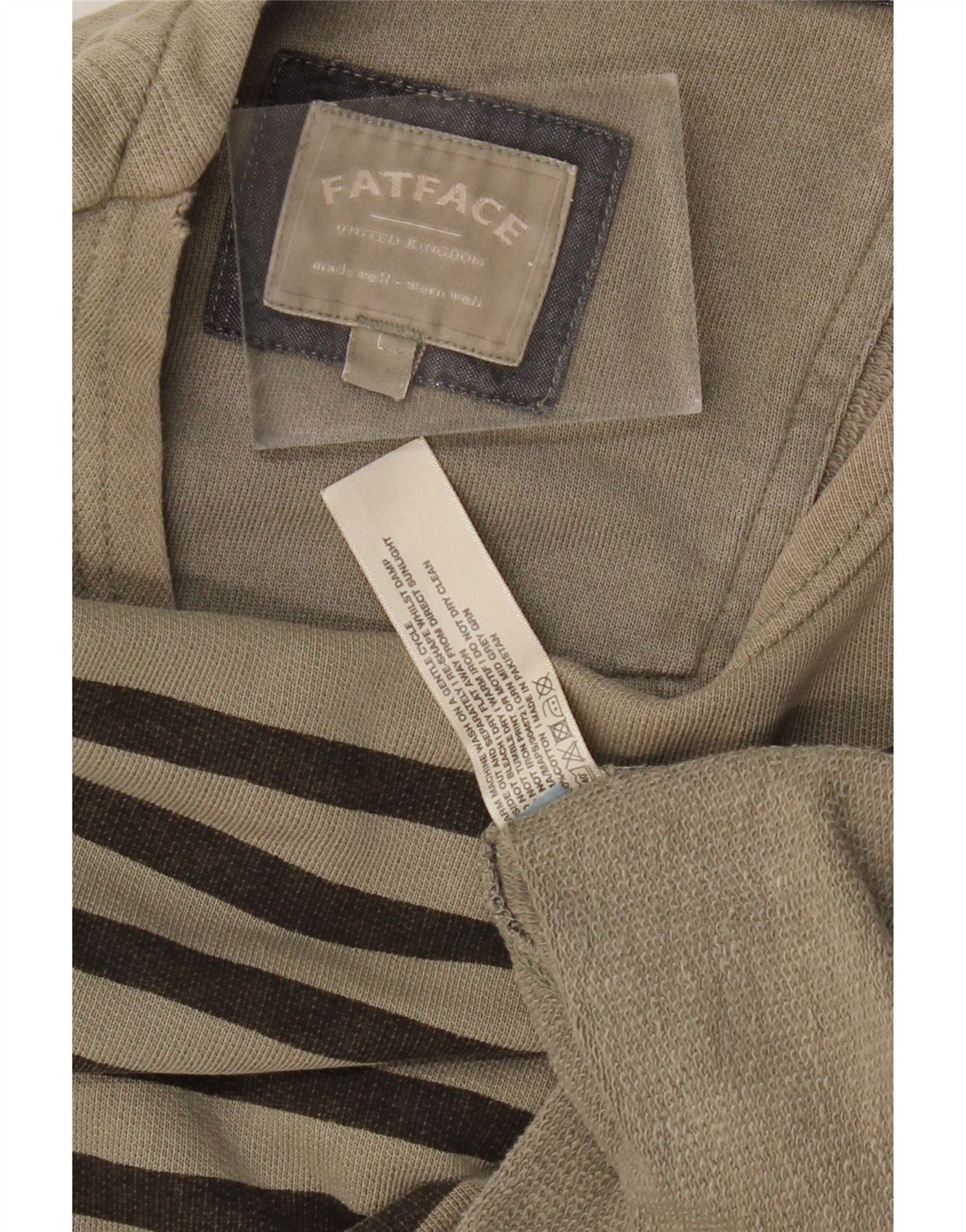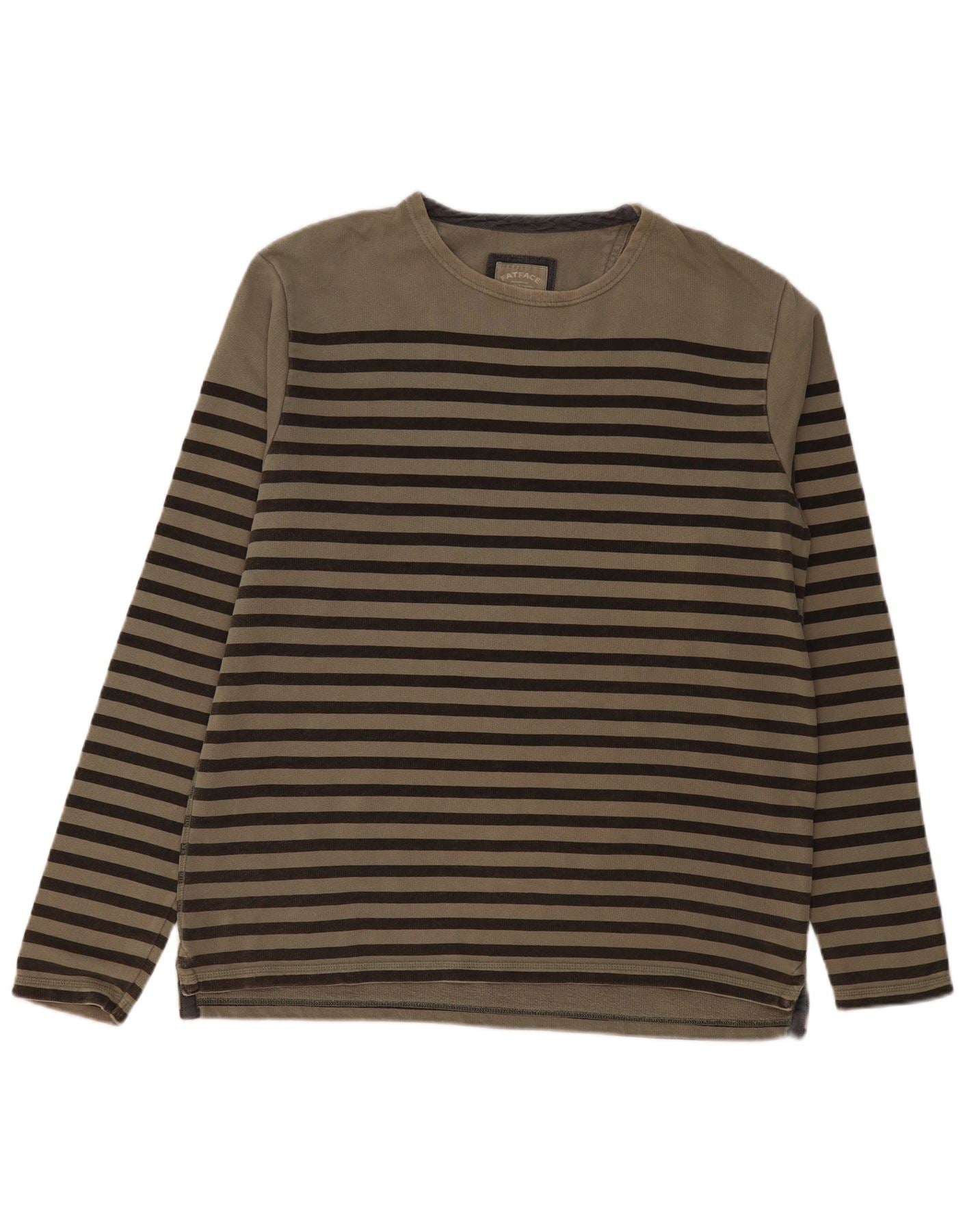 FAT FACE Mens Top Long Sleeve Large Khaki Striped Cotton