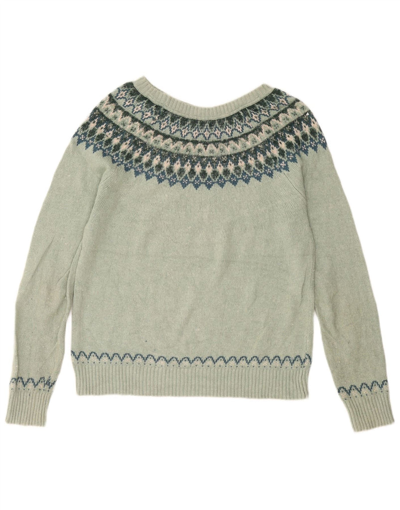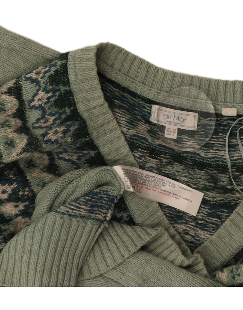 FAT FACE Womens Boat Neck Jumper Sweater UK 10 Small Green Fair Isle