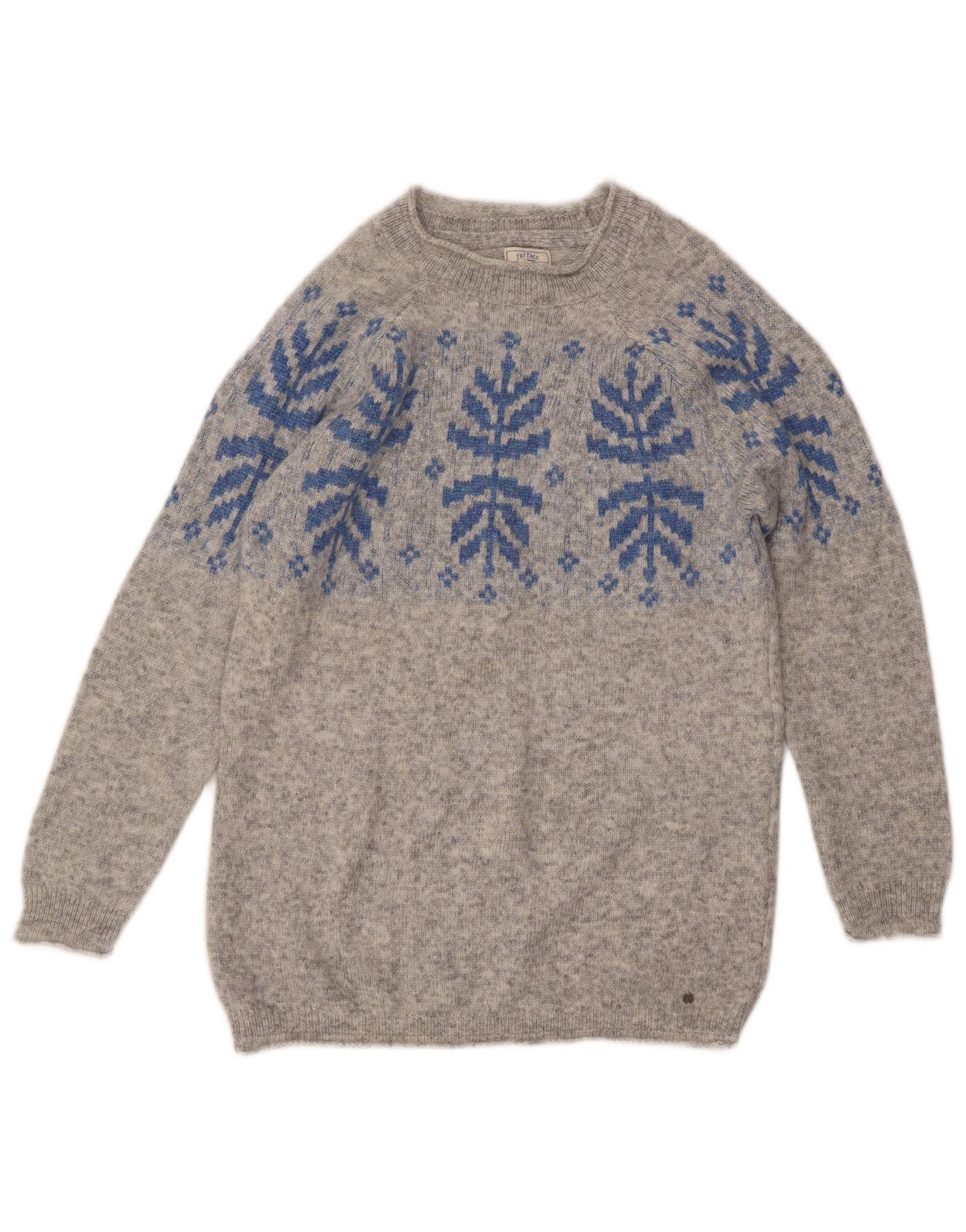 FAT FACE Womens Crew Neck Jumper Sweater UK 10 Small Grey Fair Isle