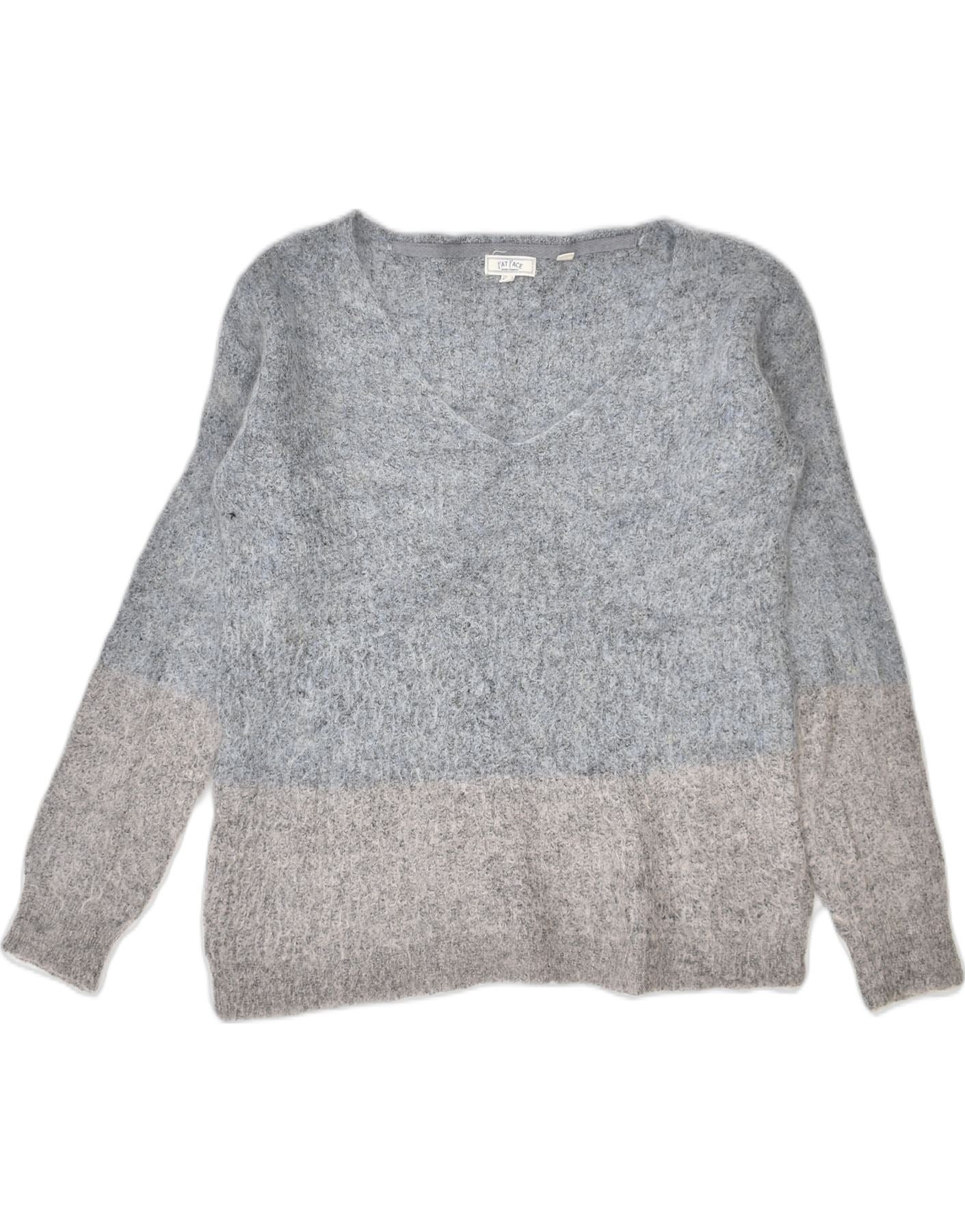 FAT FACE Womens Loose Fit V-Neck Jumper Sweater UK 10 Small Grey