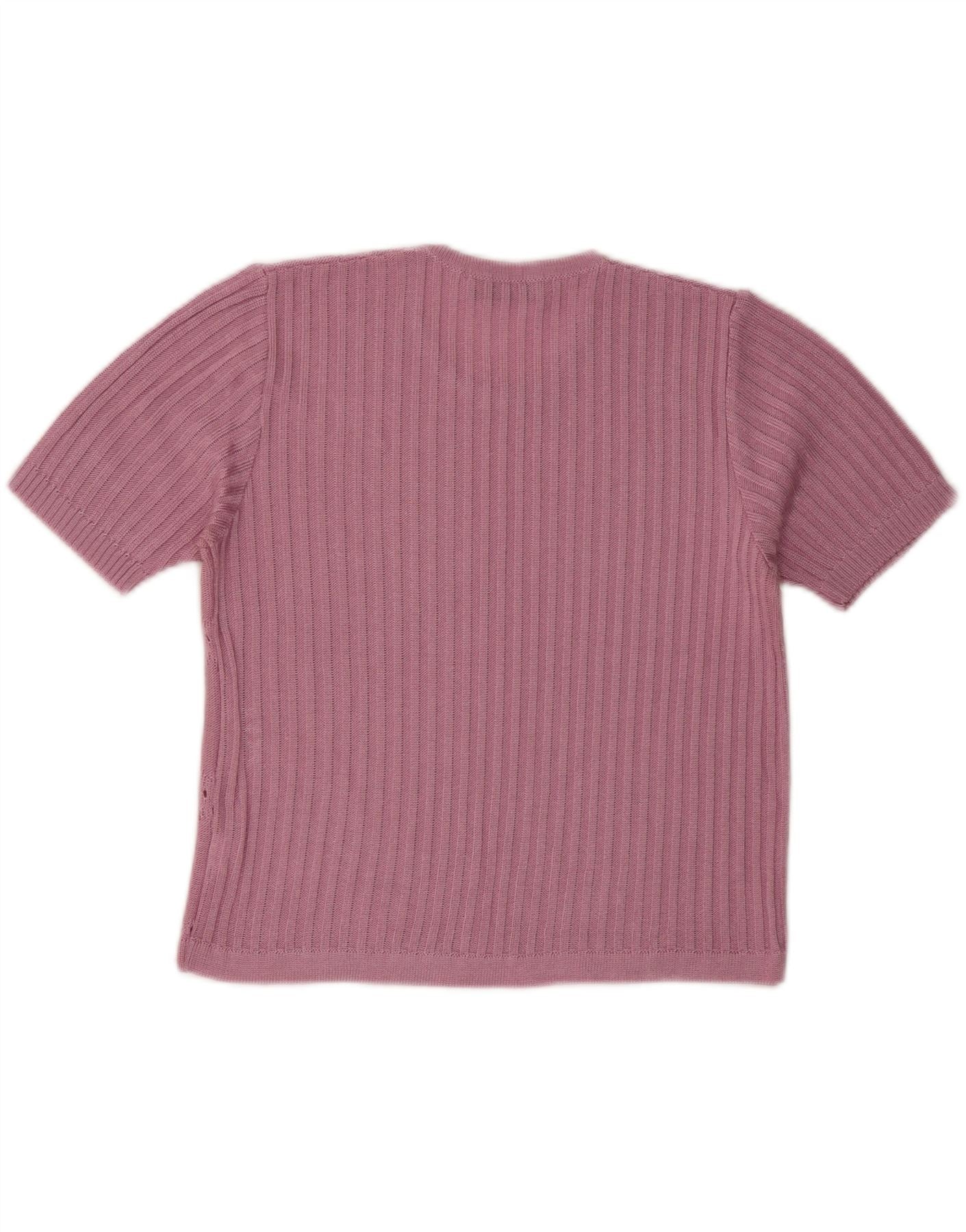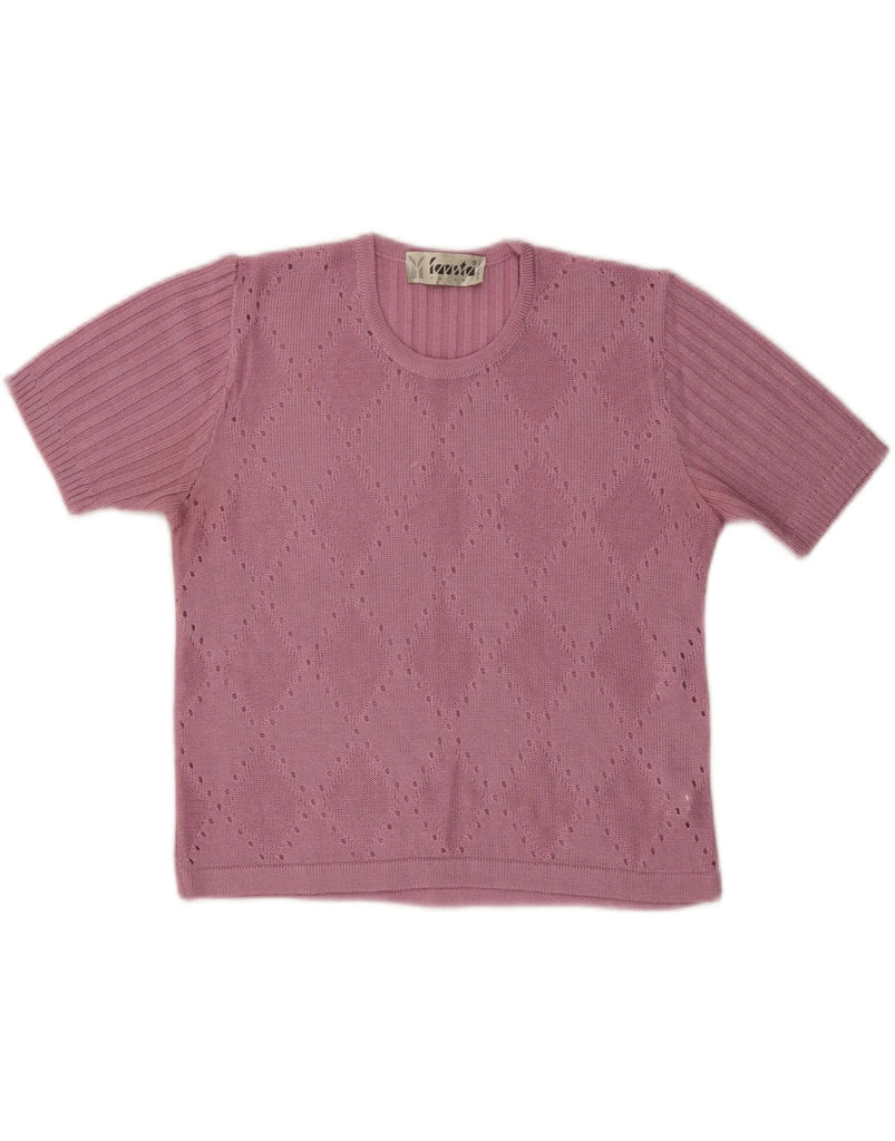 FAUSTA Womens Short Sleeve Crew Neck Jumper Sweater UK 10 Small Pink