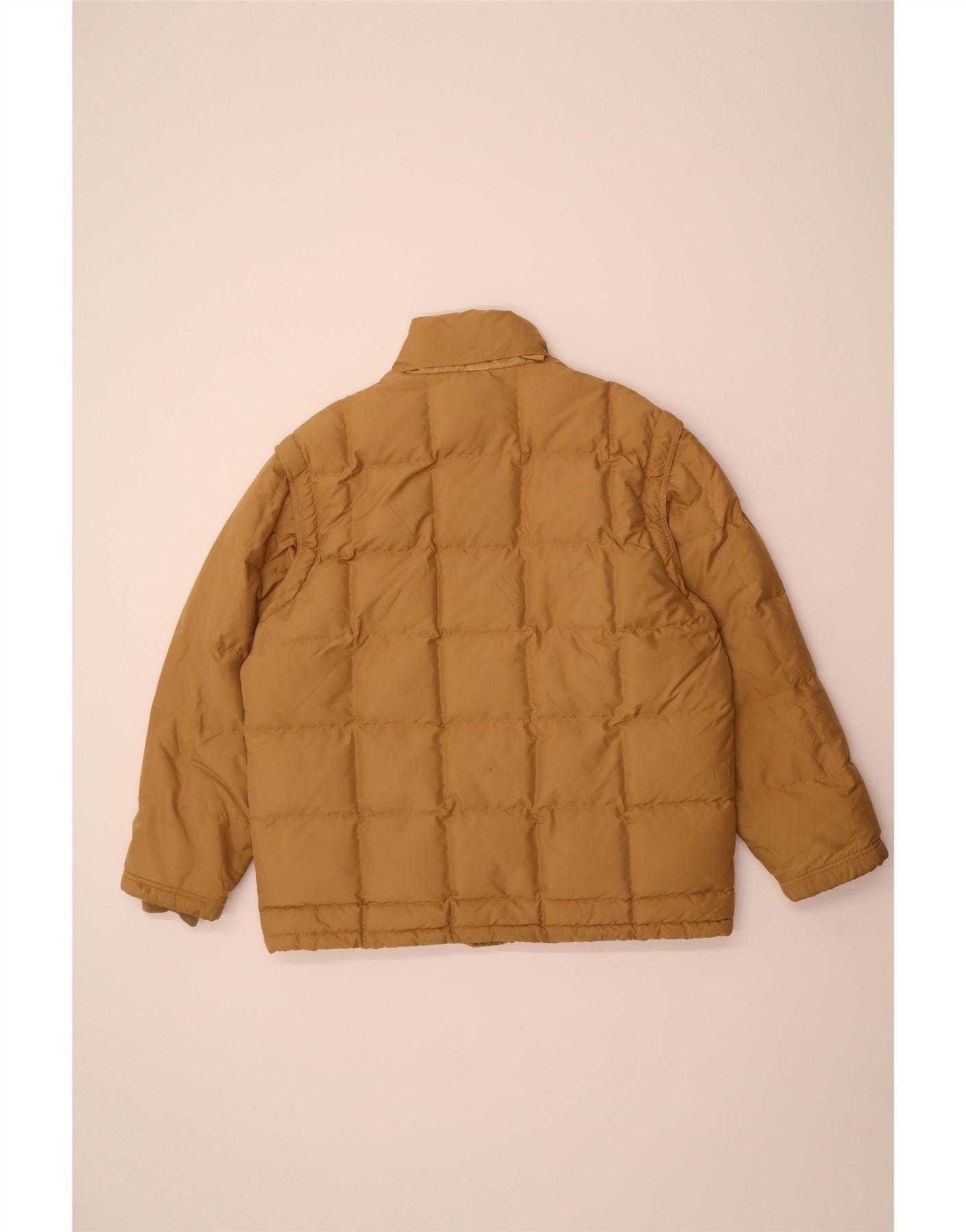 • AI Description: This Fay men's padded jacket is crafted from a warm, down-filled fabric in a rich brown hue. The padded design offers excellent thermal insulation for colder weather. It features a high neck and long sleeves, ensuring full coverage. A full zip closure provides practicality, complemented by multiple pockets for storage. These pockets feature both zip and button accents. The regular fit allows for comfortable layering, creating a classic and functional outerwear piece.