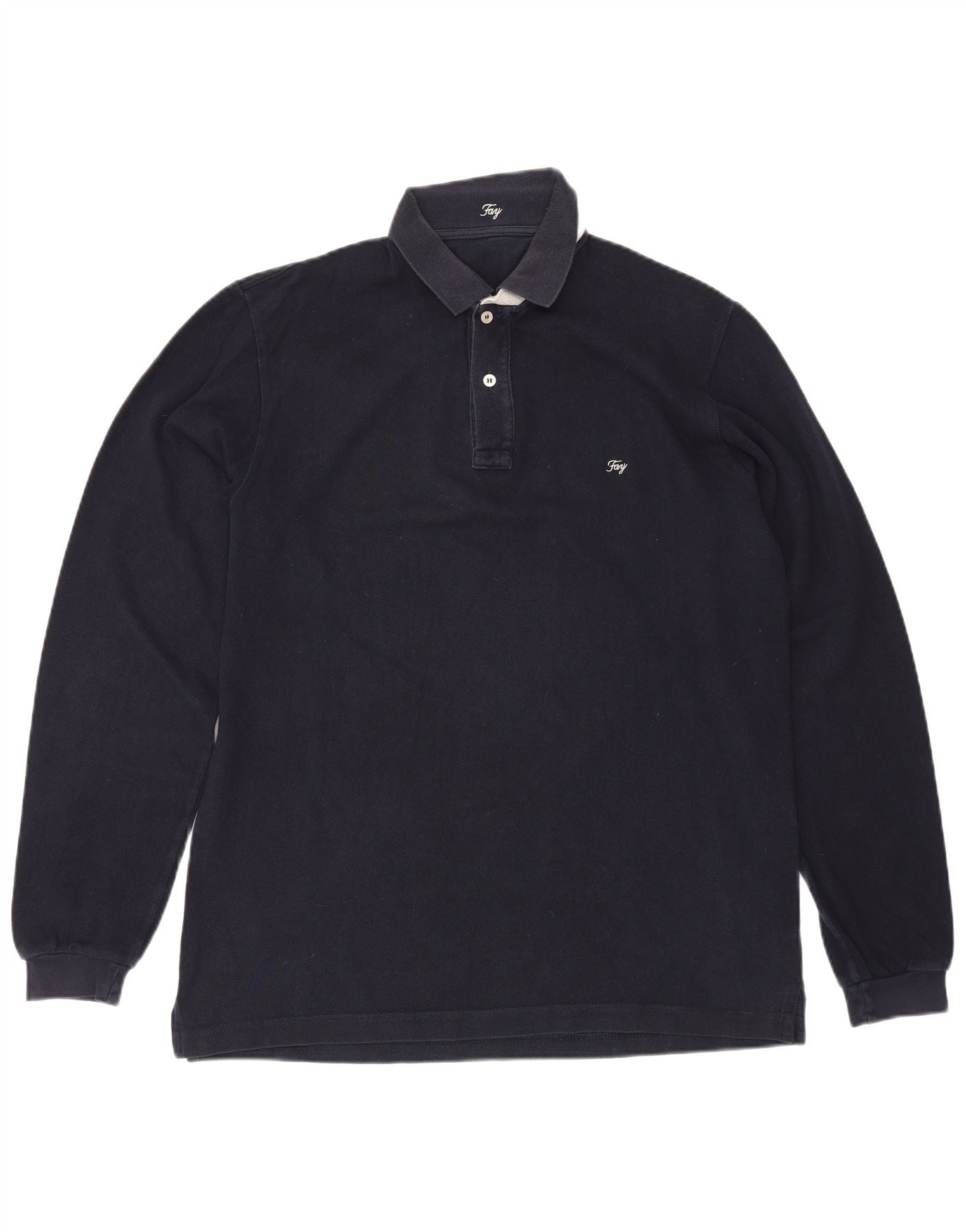 FAY Mens Tall Long Sleeve Rugby Polo Shirt Large Navy Blue Cotton