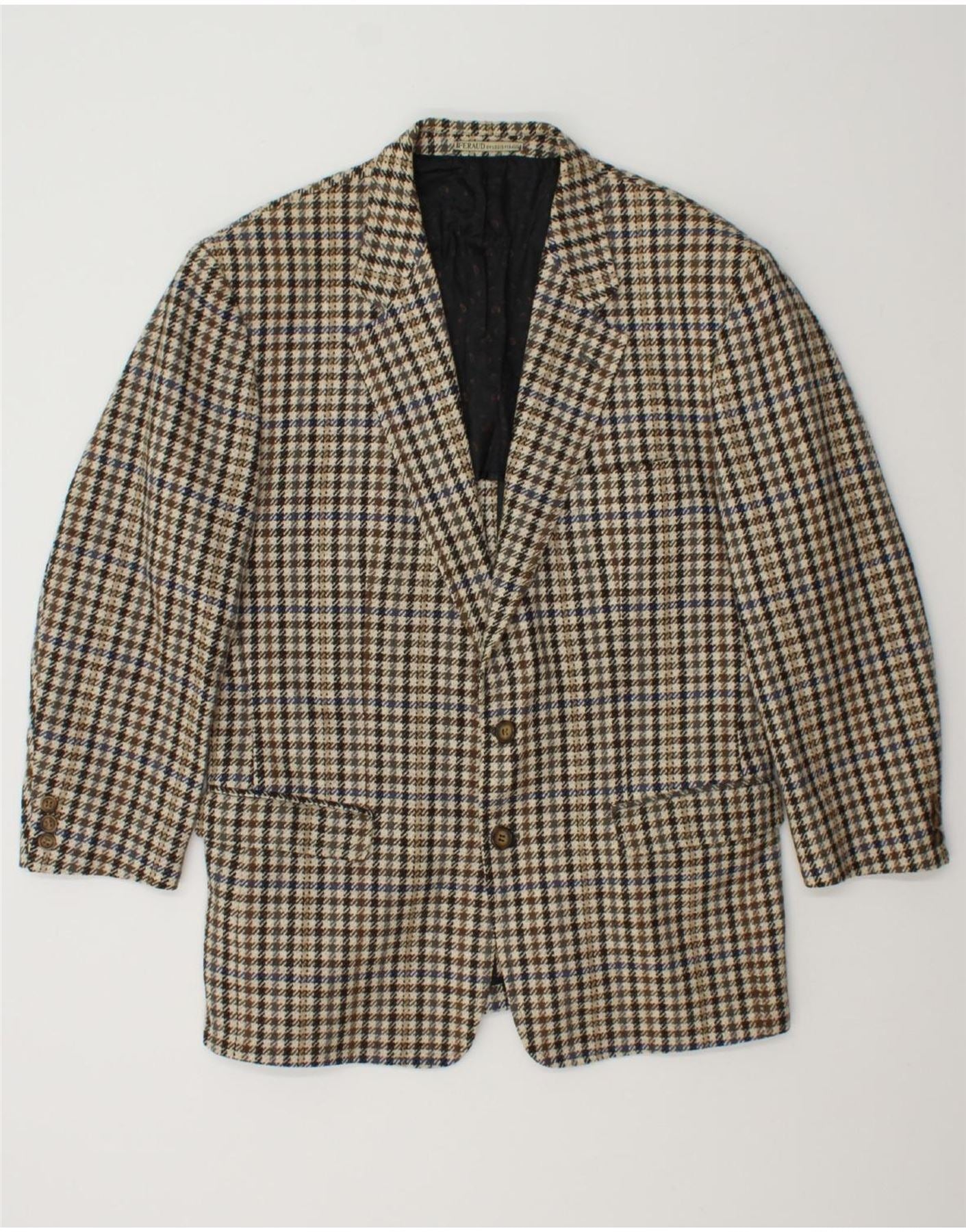 FERAUD Mens 2 Button Blazer Jacket IT 50 Large Beige Houndstooth