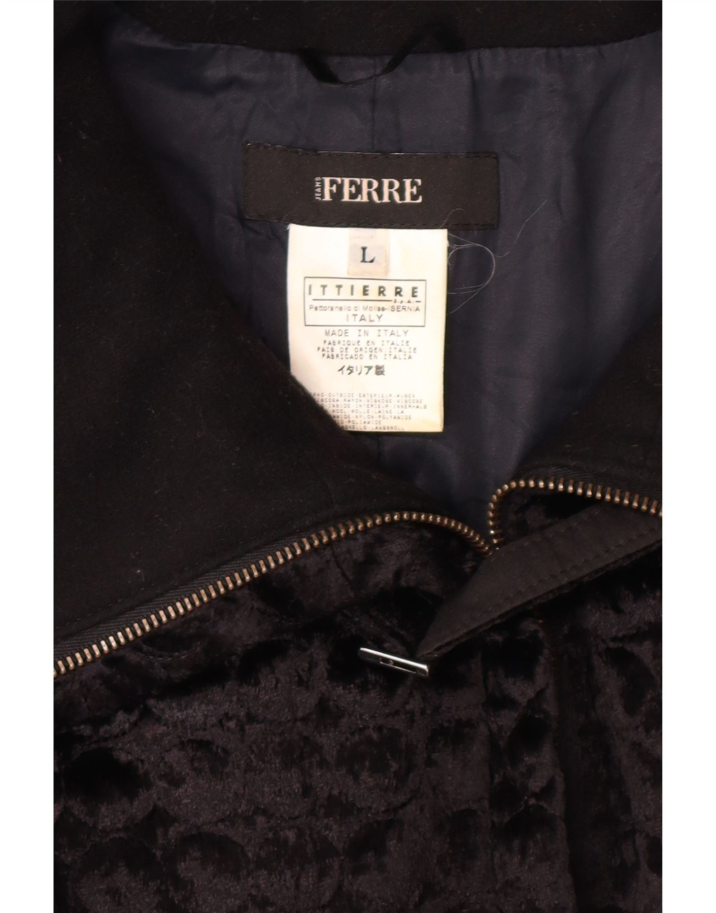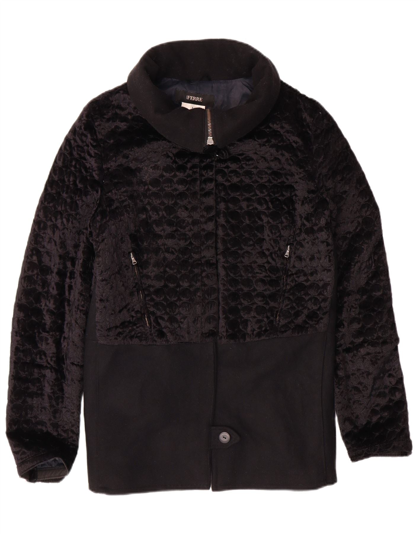 FERRE Womens Velvet Jacket UK 14 Large Black Wool Classic