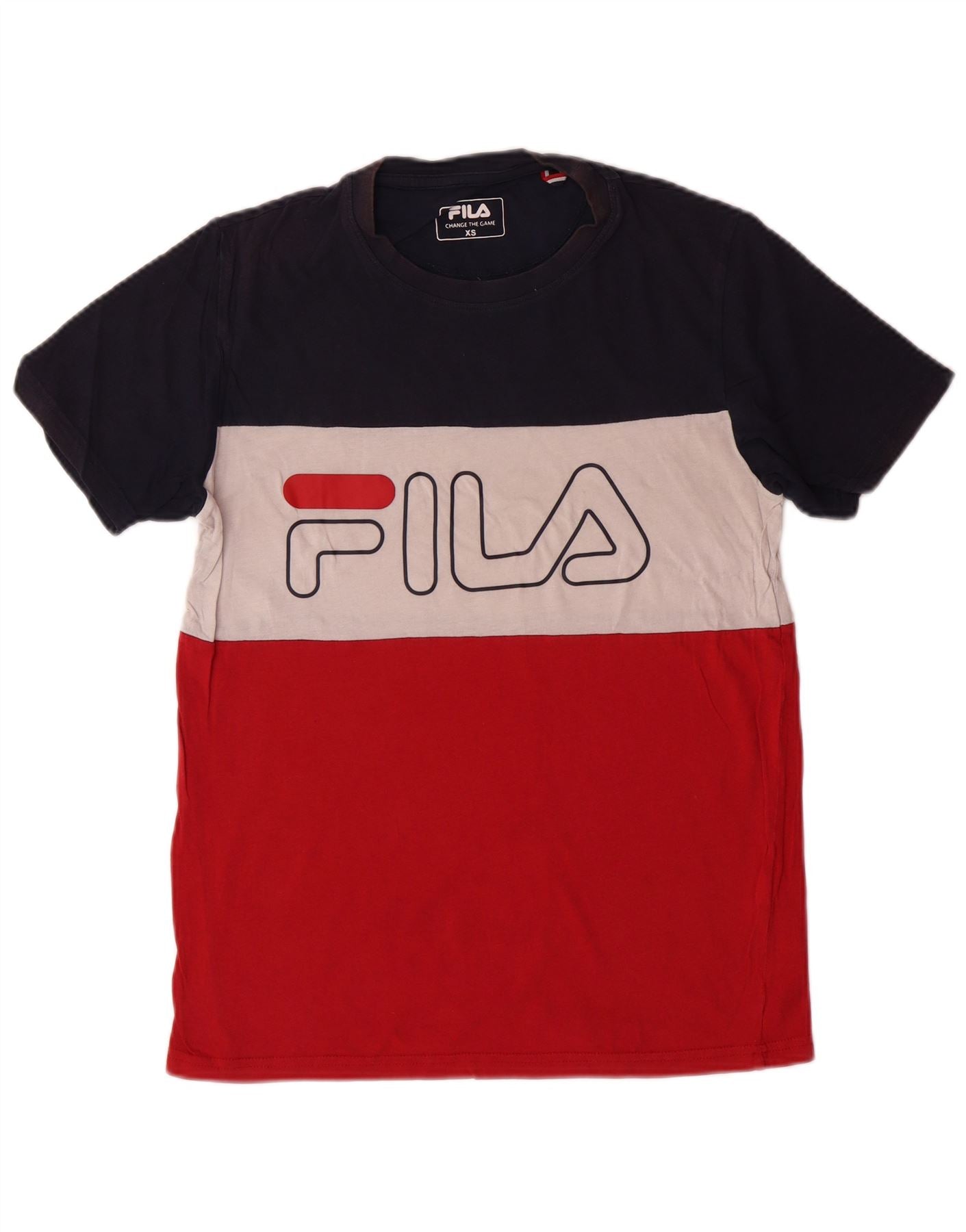 FILA Mens Change the Game Graphic T-Shirt Top XS Red Colourblock Cotton