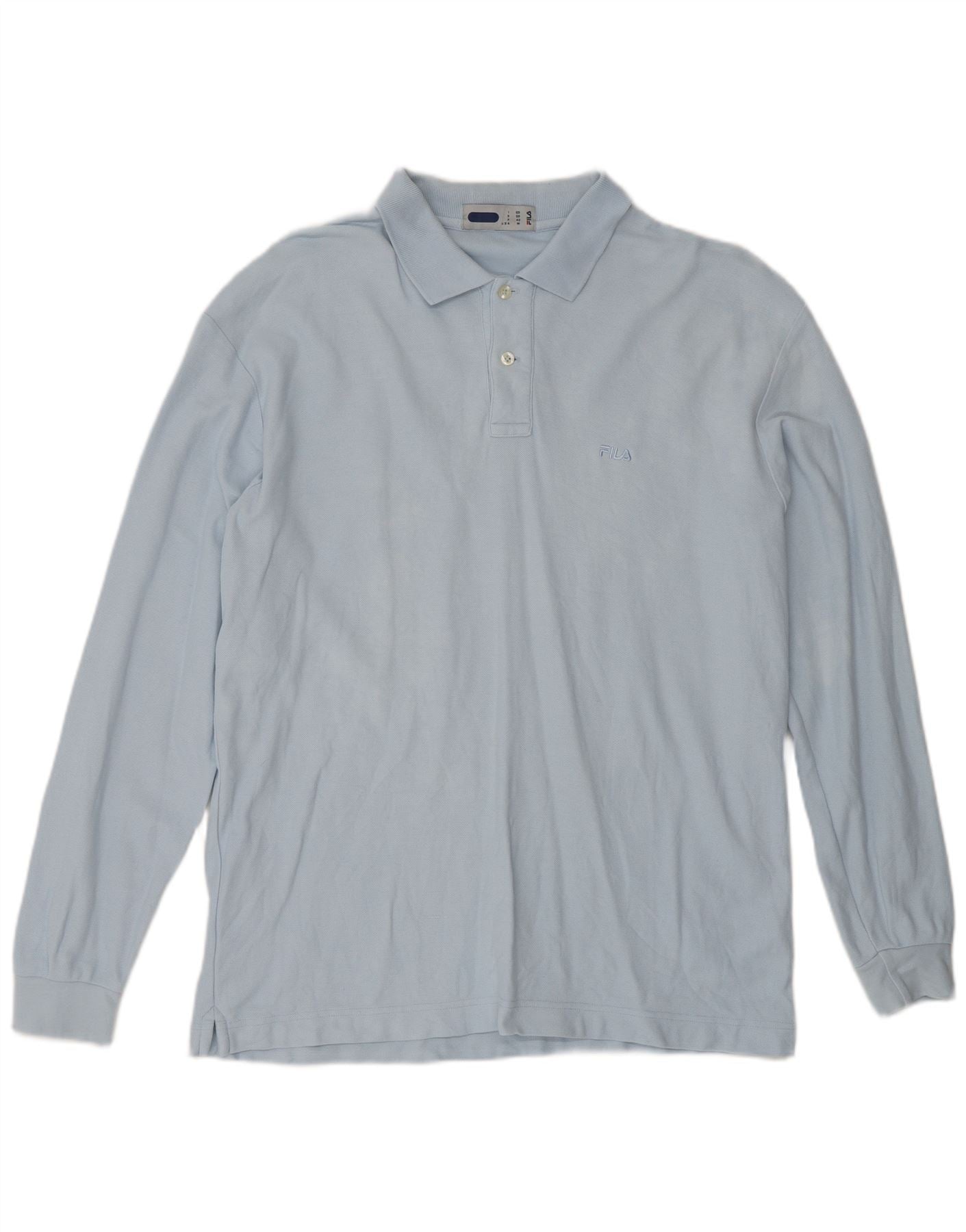 FILA Mens Loose Fit Long Sleeve Polo Shirt IT 50 Medium Blue Cotton