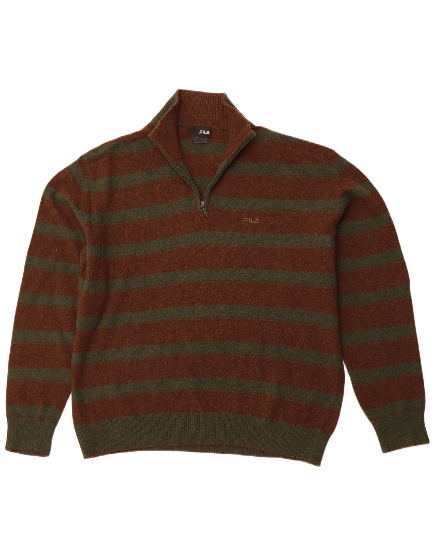 FILA Mens Zip Neck Jumper Sweater XL Brown Striped