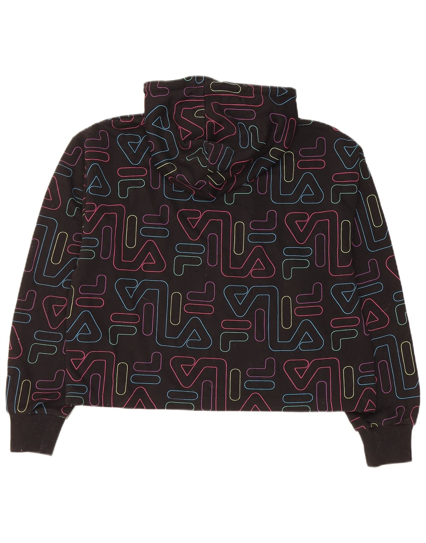 FILA Womens Crop Graphic Hoodie Jumper UK 14 Medium Black Cotton
