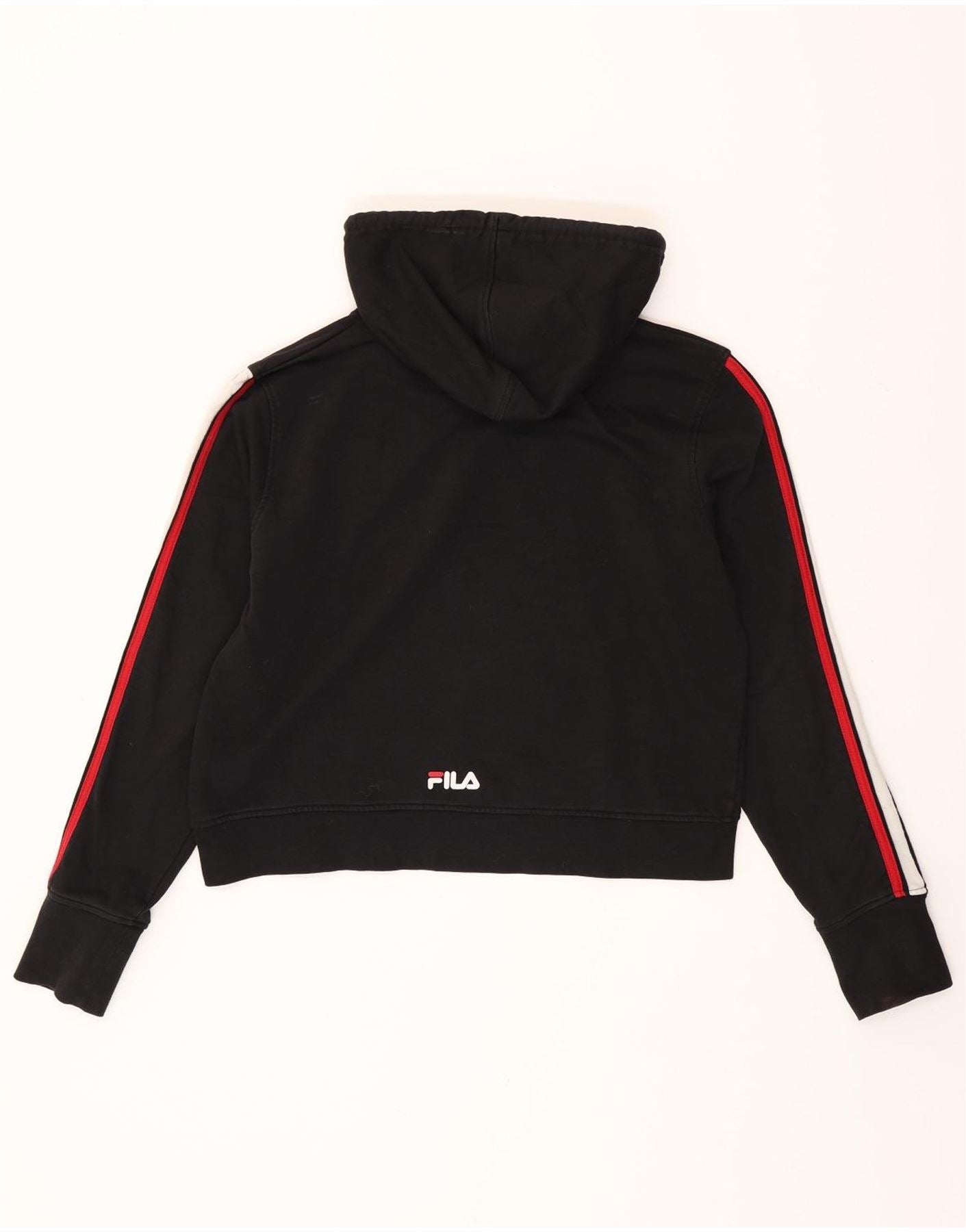 FILA Womens Crop Graphic Hoodie Jumper UK 18 XL Black Colourblock Cotton