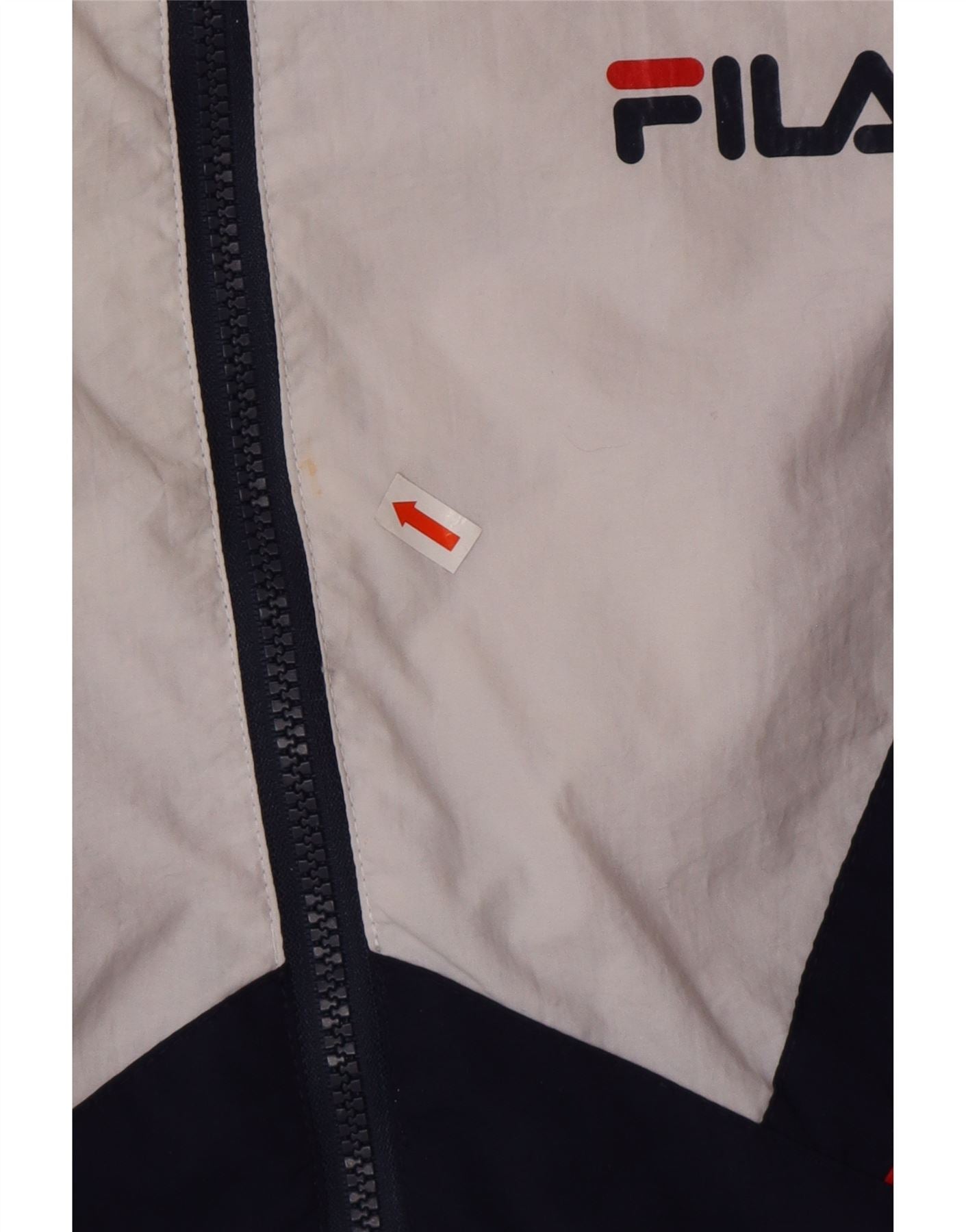 FILA Womens Graphic Hooded Fleece Jumper UK 14 Medium Navy Blue Polyester