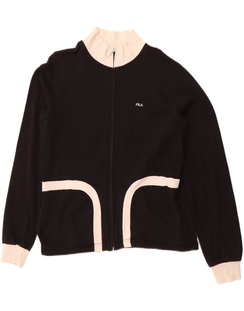 FILA Womens Tracksuit Top Jacket UK 16 Large Black Colourblock Cotton