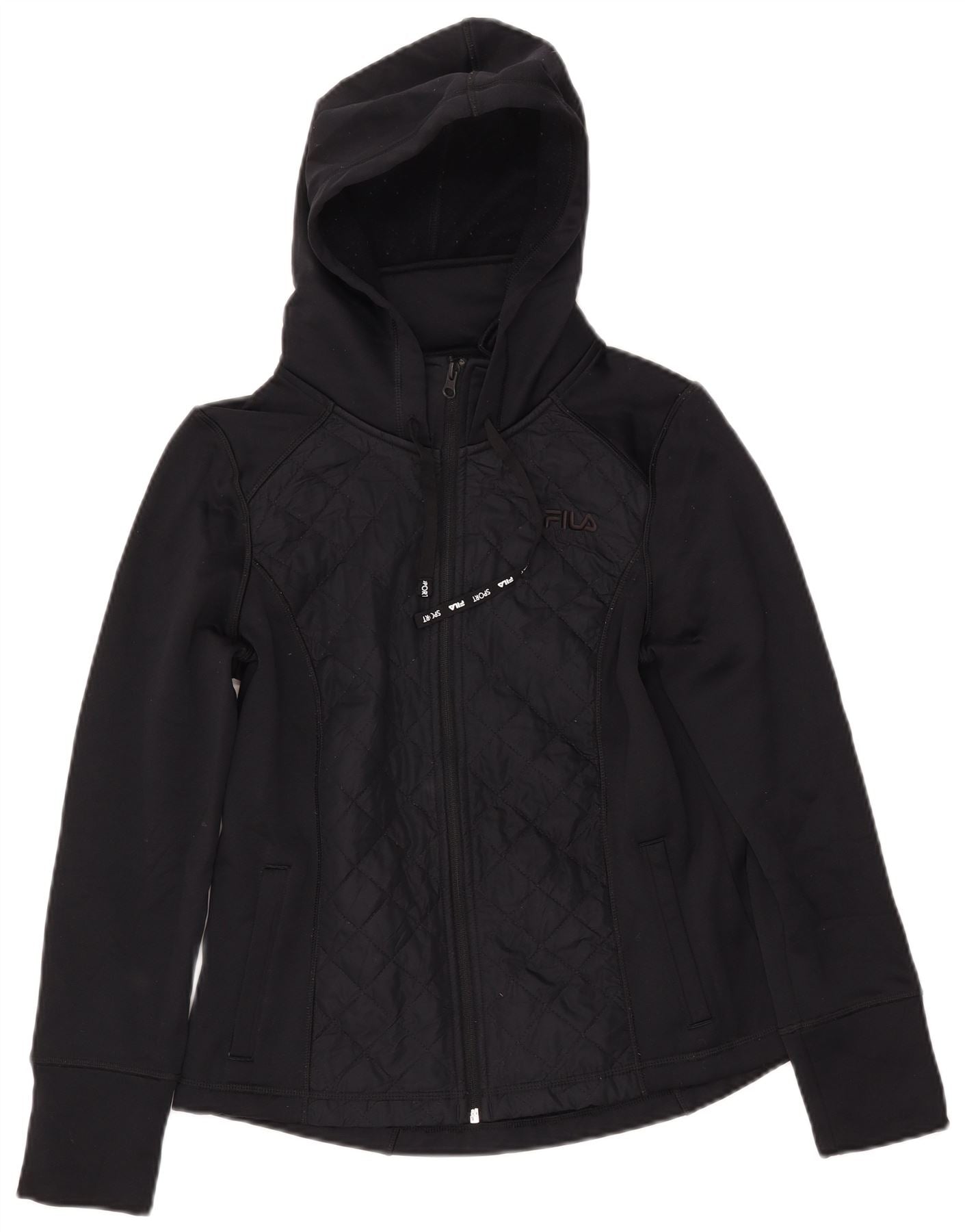 FILA Womens Zip Hoodie Sweater UK 10 Small Black Polyester