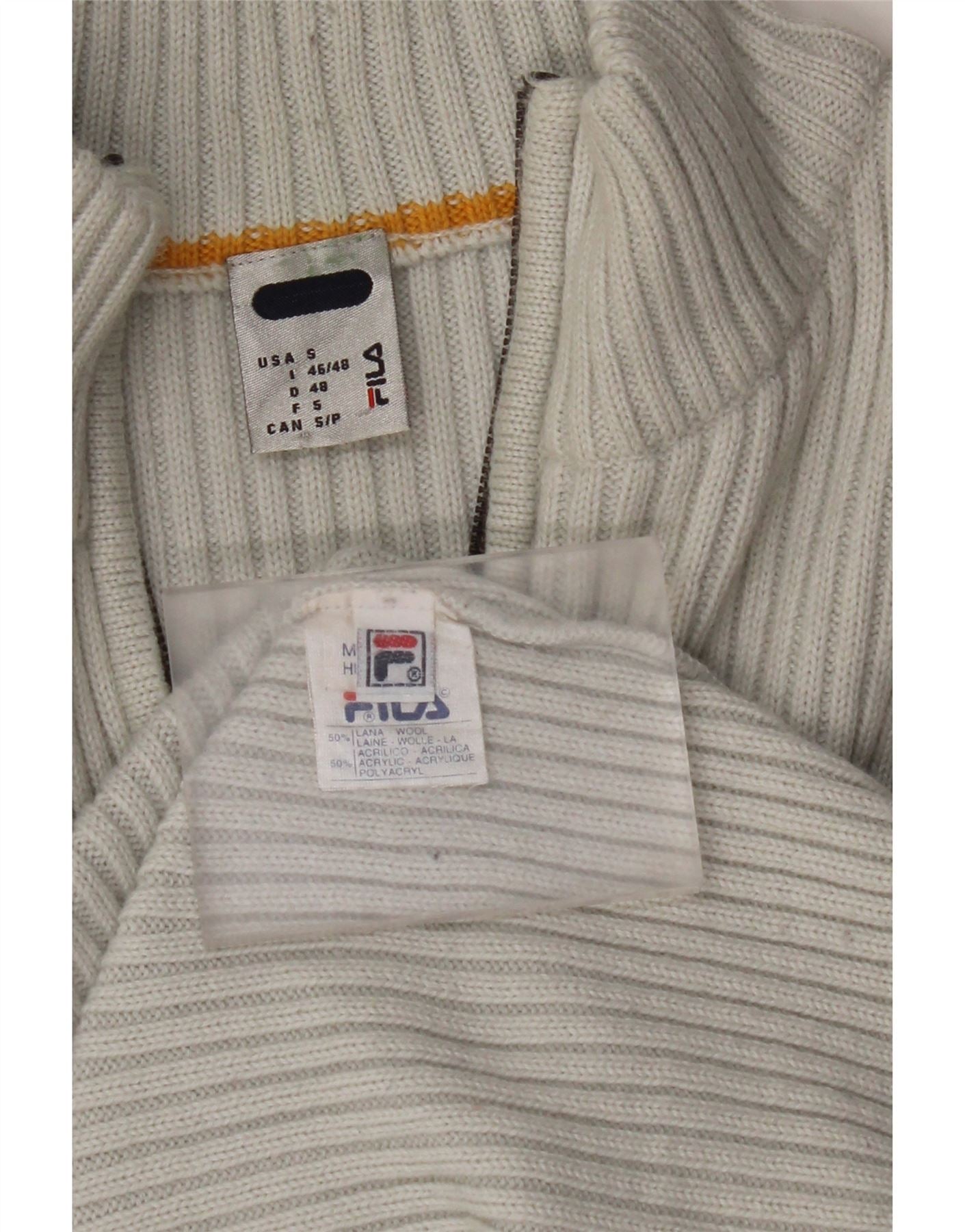 FILA Womens Zip Neck Jumper Sweater UK 10 Small Grey Striped Wool