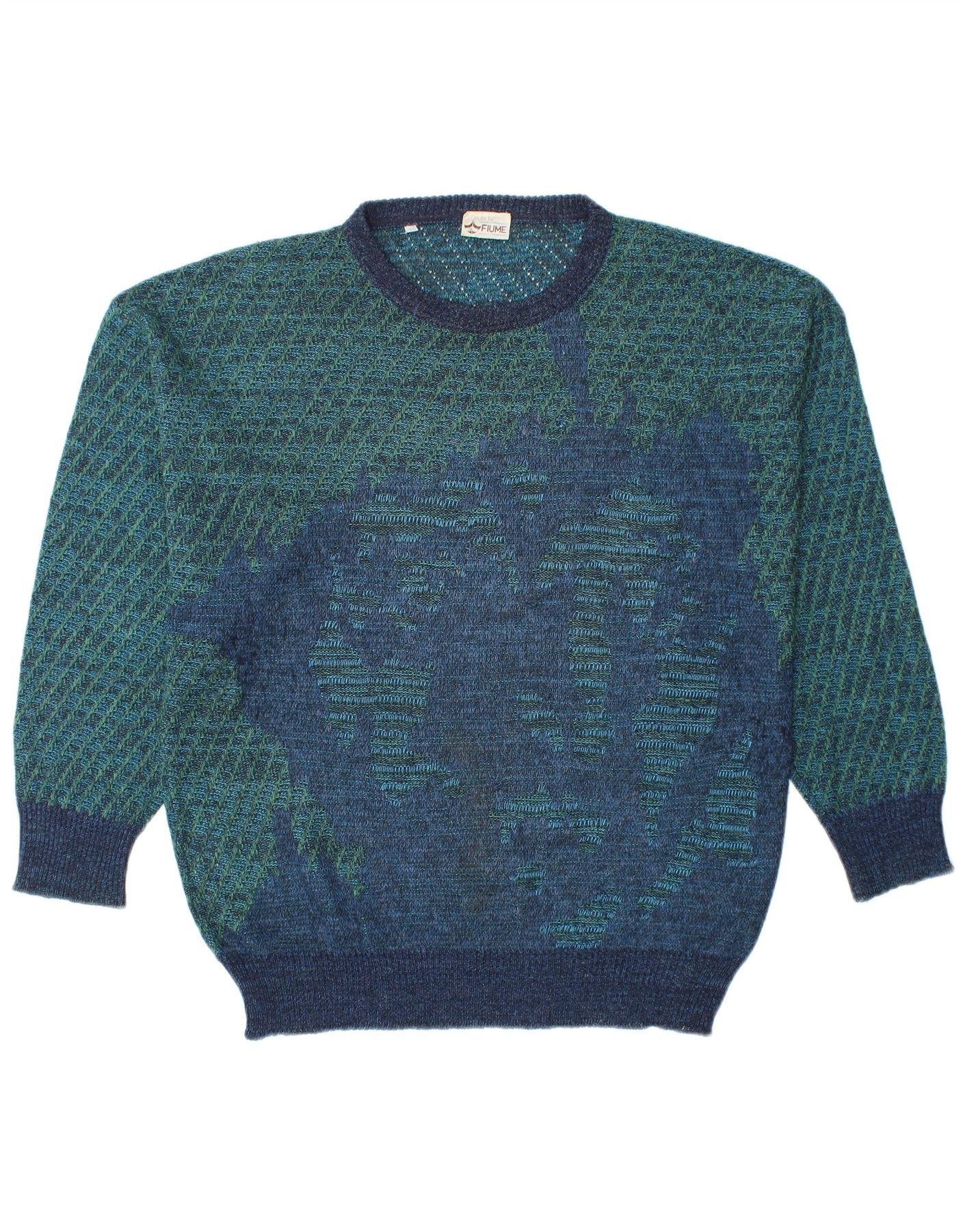 FIUME Mens Crew Neck Jumper Sweater IT 52 Large Blue Striped Acrylic