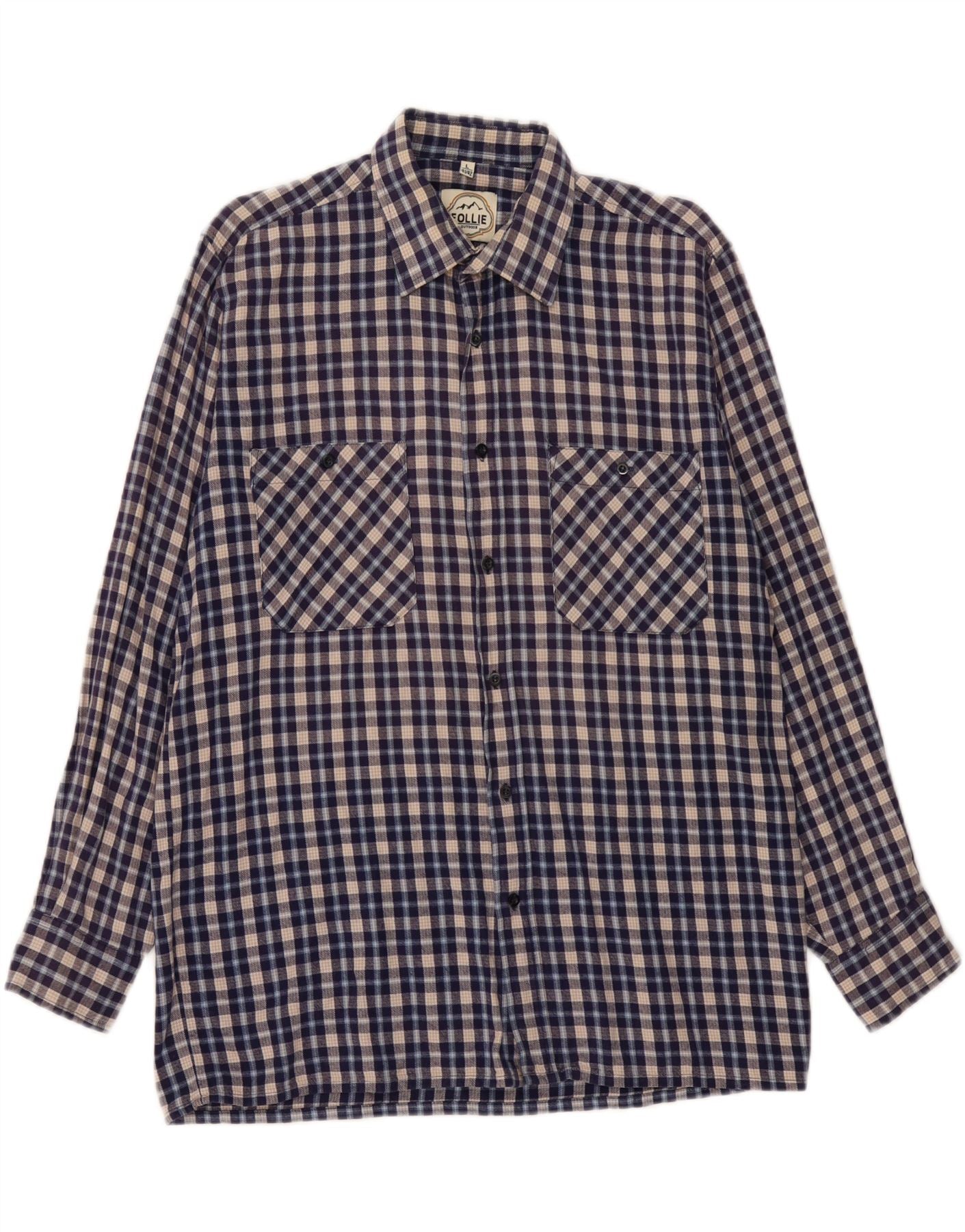FOLLIE Mens Flannel Shirt Size 41/42 Large Blue Check