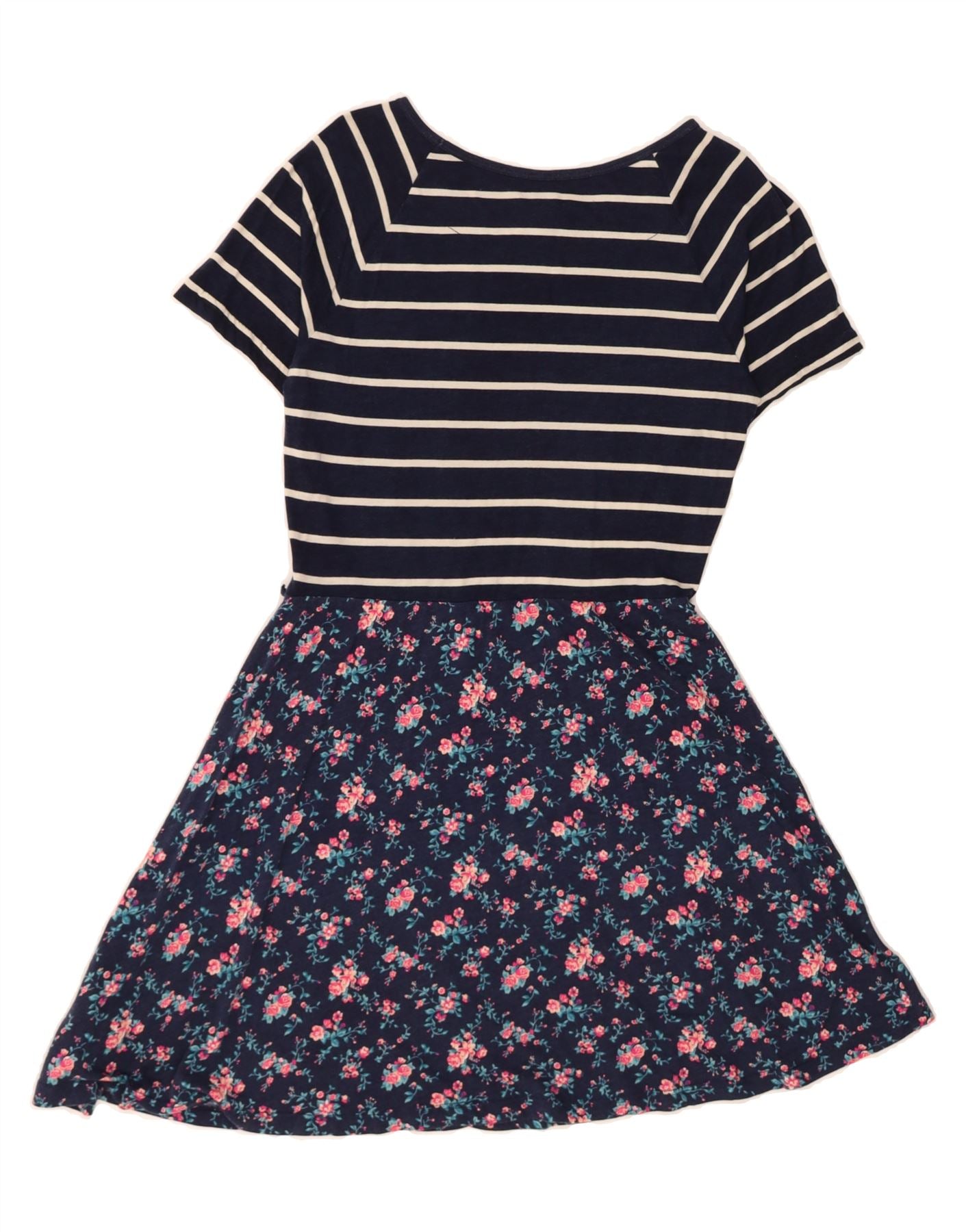 FOREVER 21 Girls A-Line Dress 13-14 Years Navy Blue Floral Cotton Nautical