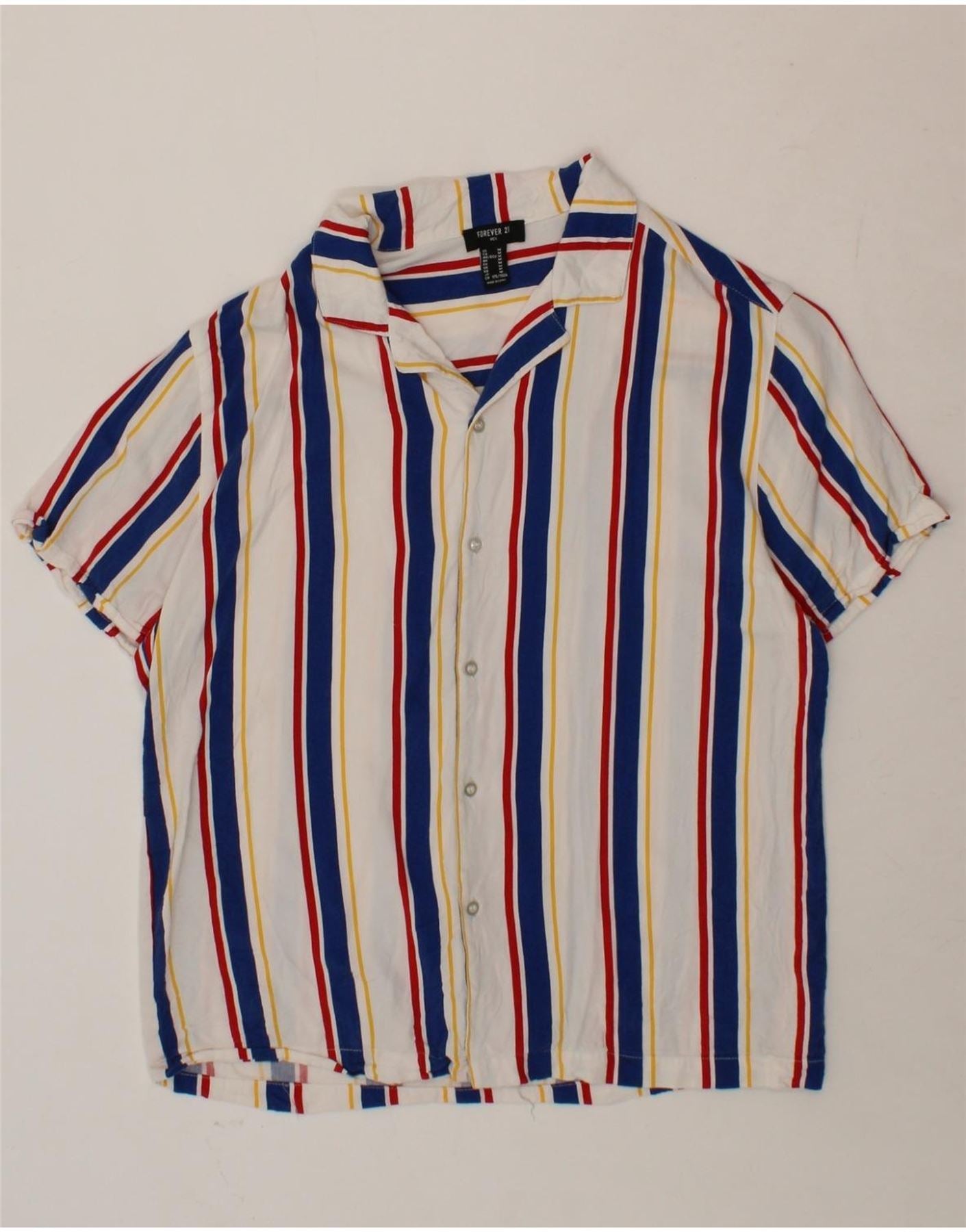 FOREVER 21 Mens Short Sleeve Shirt Medium Navy Blue Striped Cotton