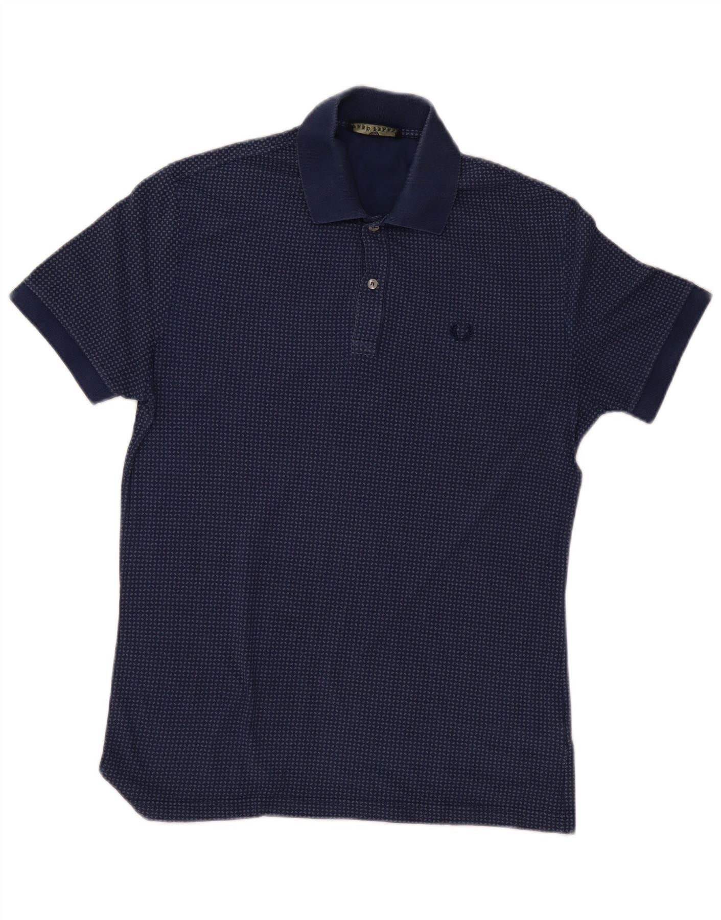 FRED PERRY Mens Polo Shirt XL Navy Blue Spotted Cotton