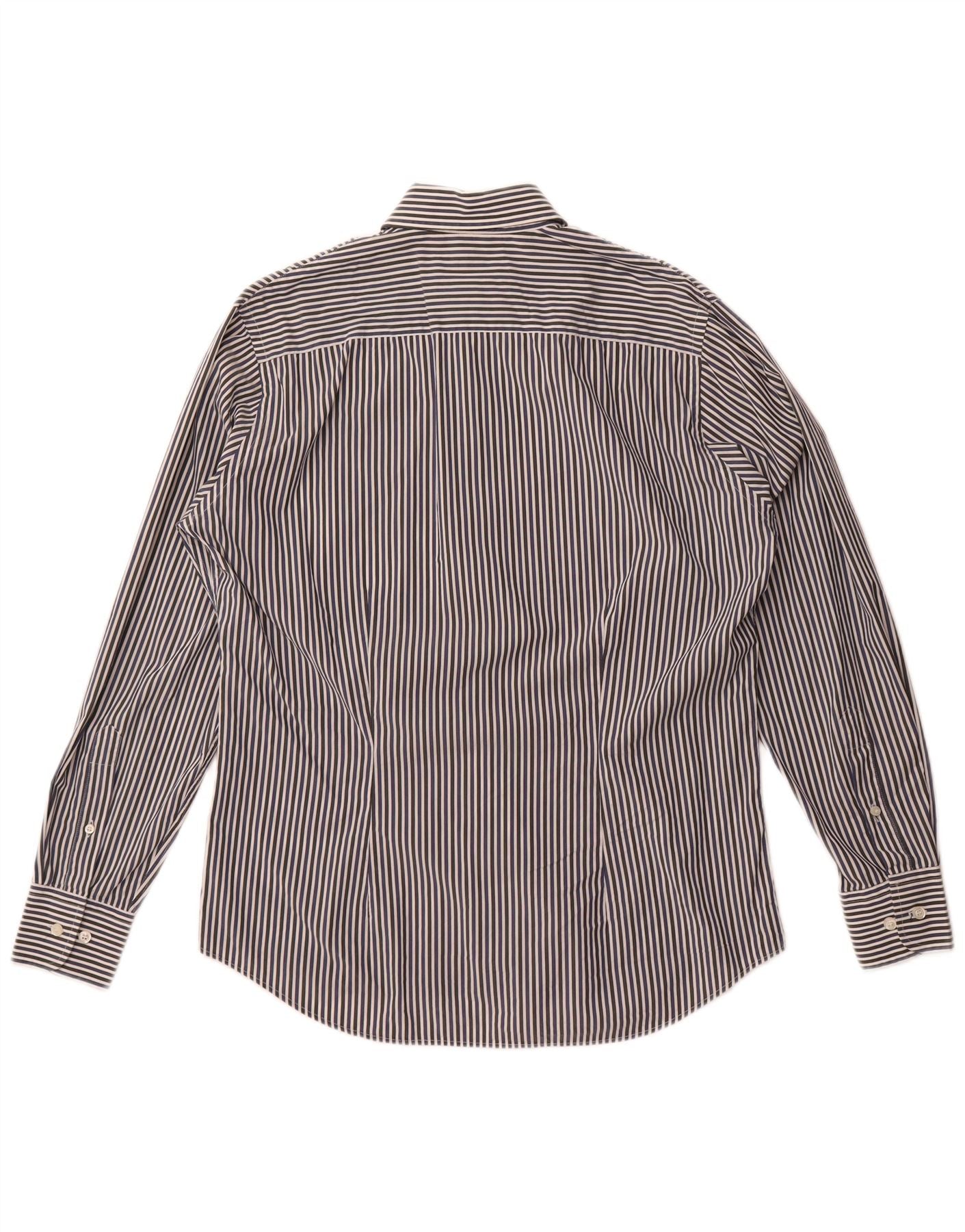 Fred Perry Mens Slim Fit Shirt Medium Navy Blue Pinstripe Cotton
