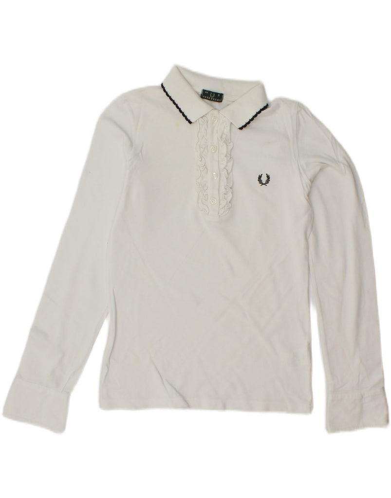 FRED PERRY Womens Long Sleeve Polo Shirt UK 10 Small White Cotton
